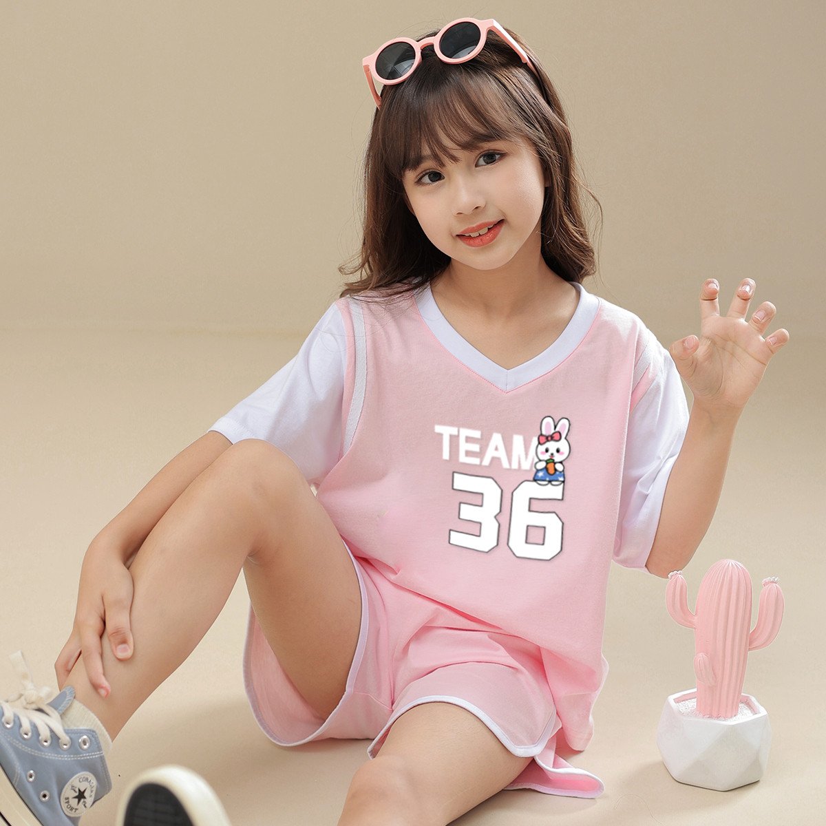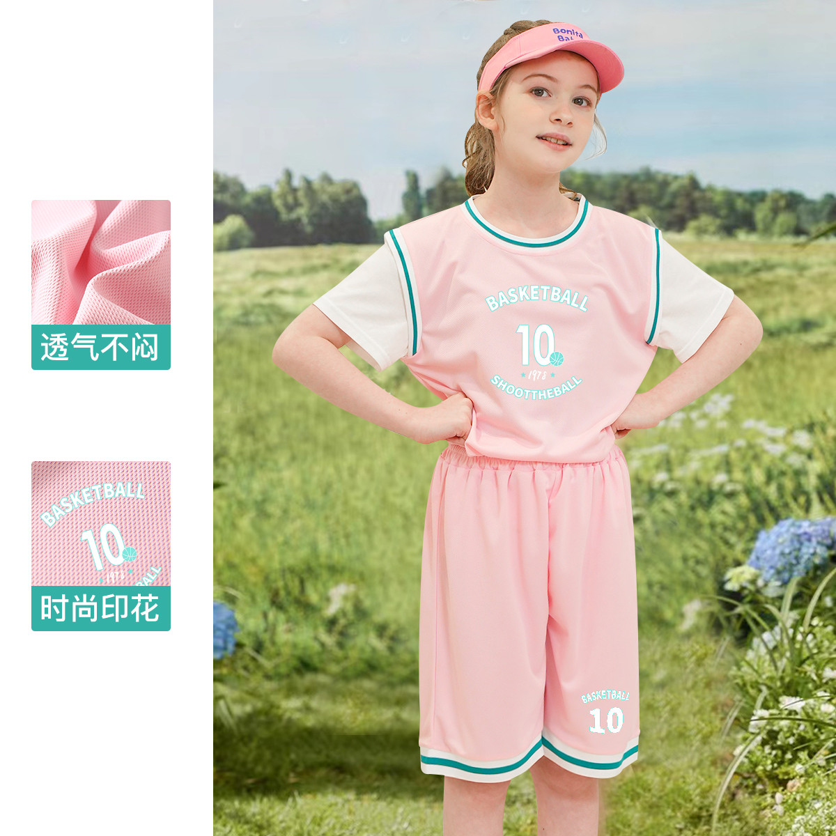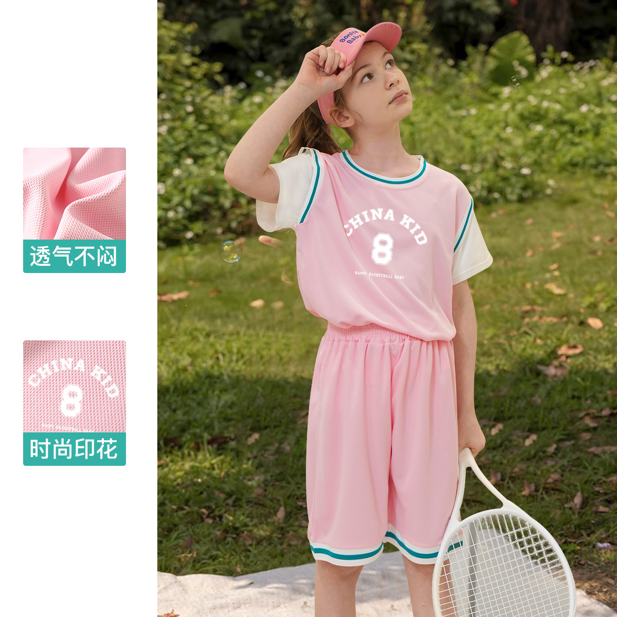 女童套装儿童运动套装2023夏篮球服女童夏大童短袖套装女 715023