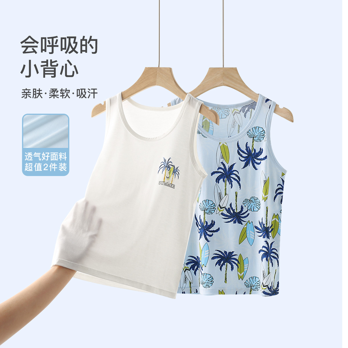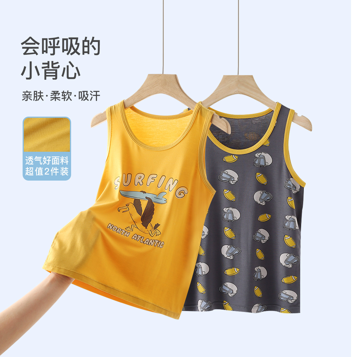 【两条装】男童莫代家居背心尔23春秋童装儿童上衣薄款轻薄透气 698383