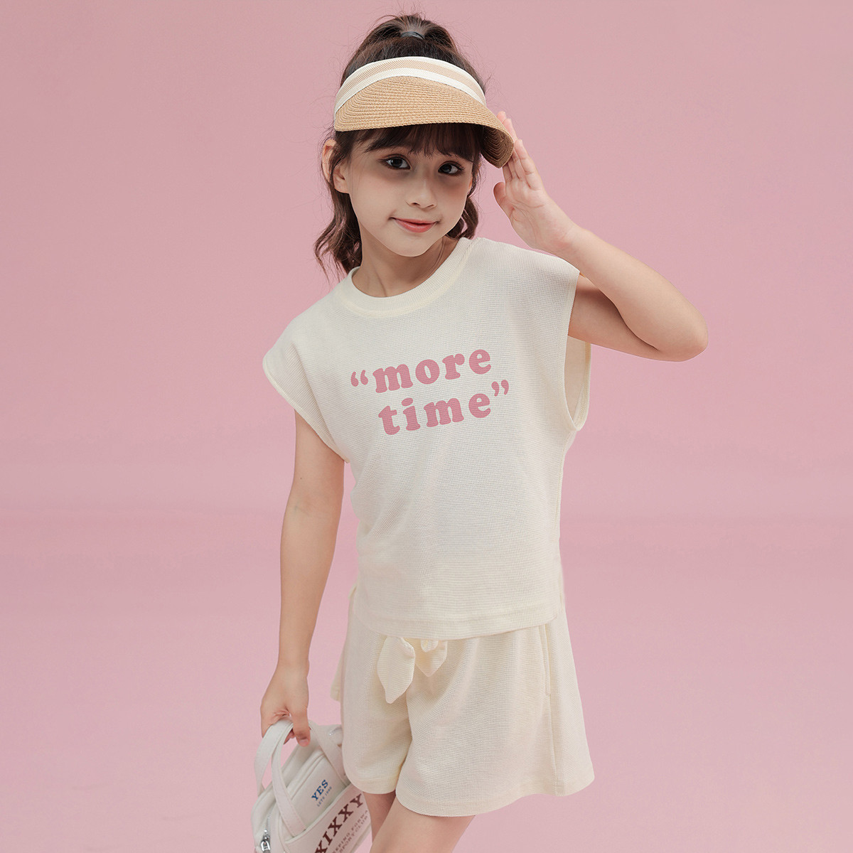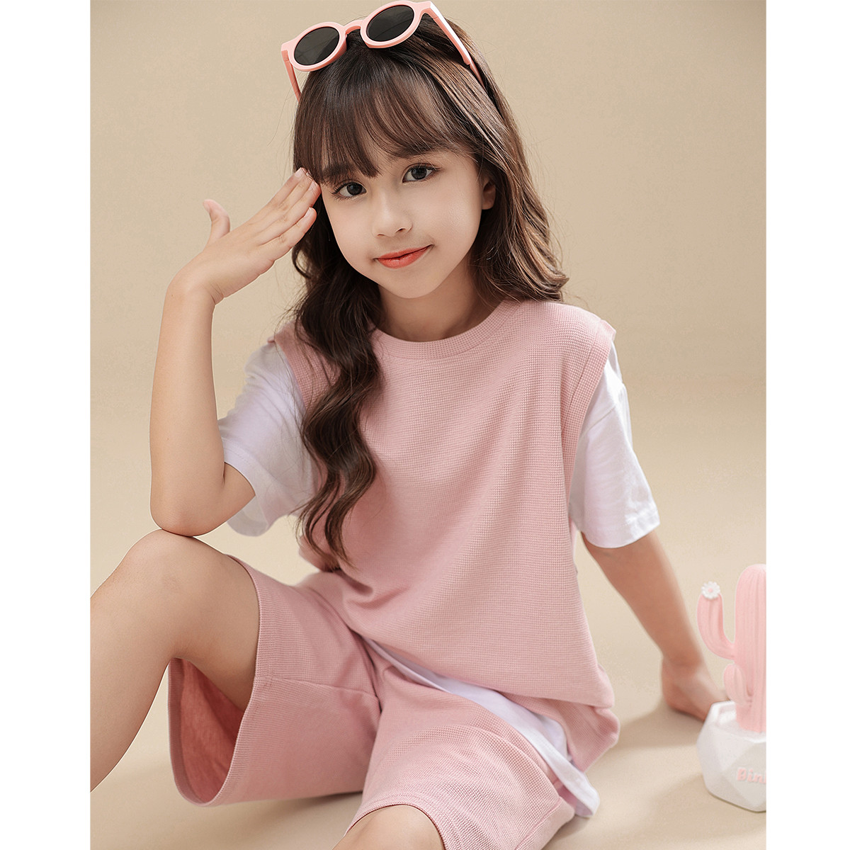 【100%棉套装】2025款夏装中大童简约短袖两件套女童套装 307166