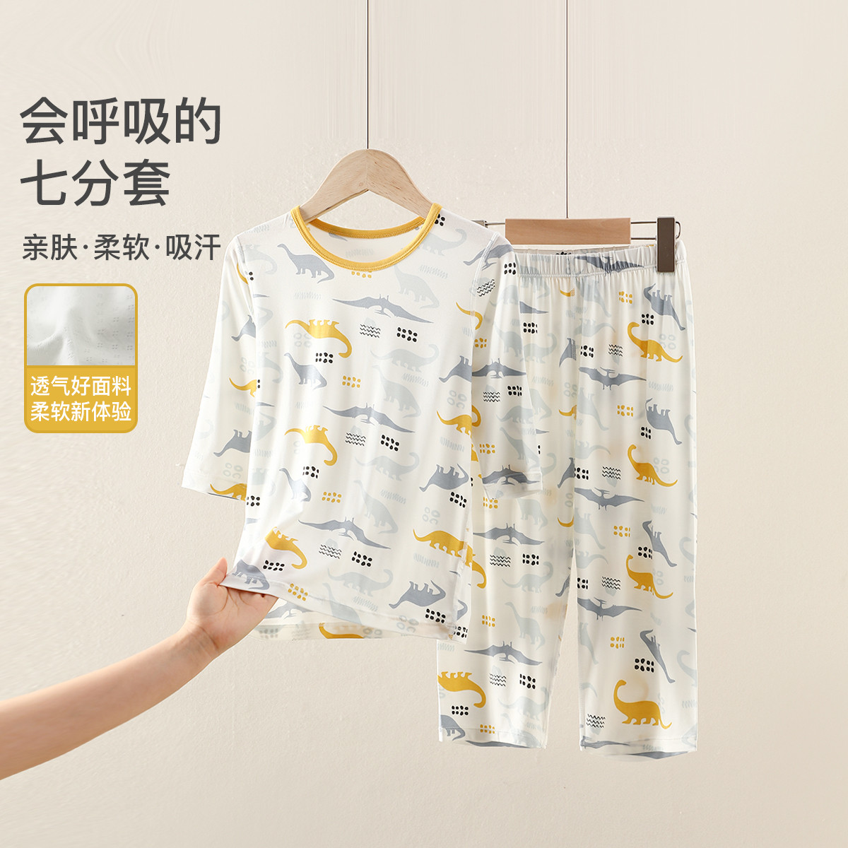 24中大童儿童夏新款空调服七分袖家居服男童薄款透气睡衣套装 724559