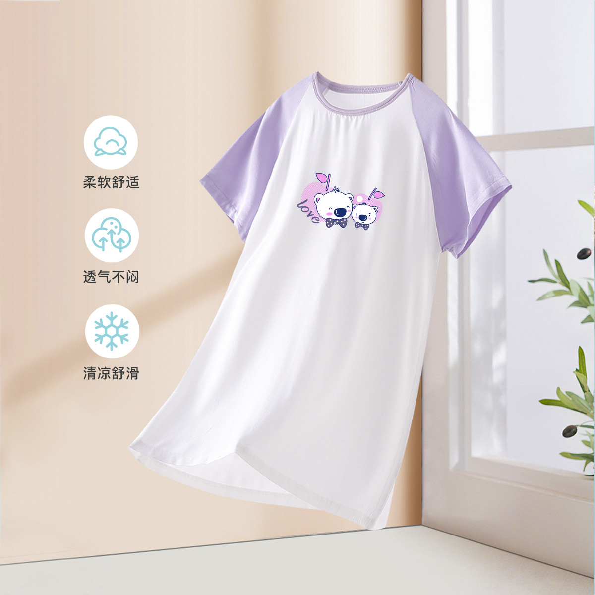 女童棉绸短袖睡裙23夏款新薄款透气绵绸女童中大童儿童睡衣 788751