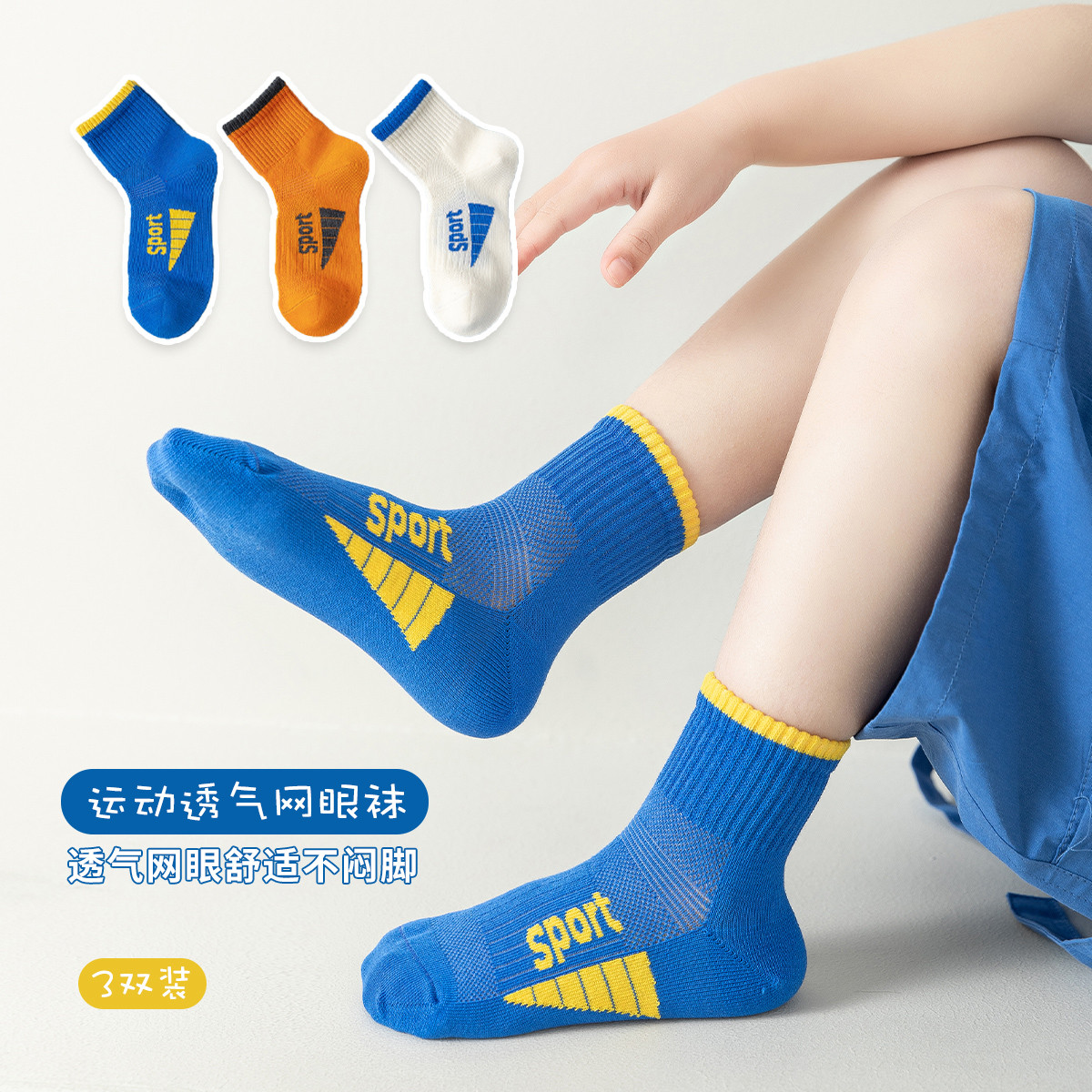 【网眼透气】3双装儿童袜子春秋透气舒适百搭中筒儿童袜子 826639