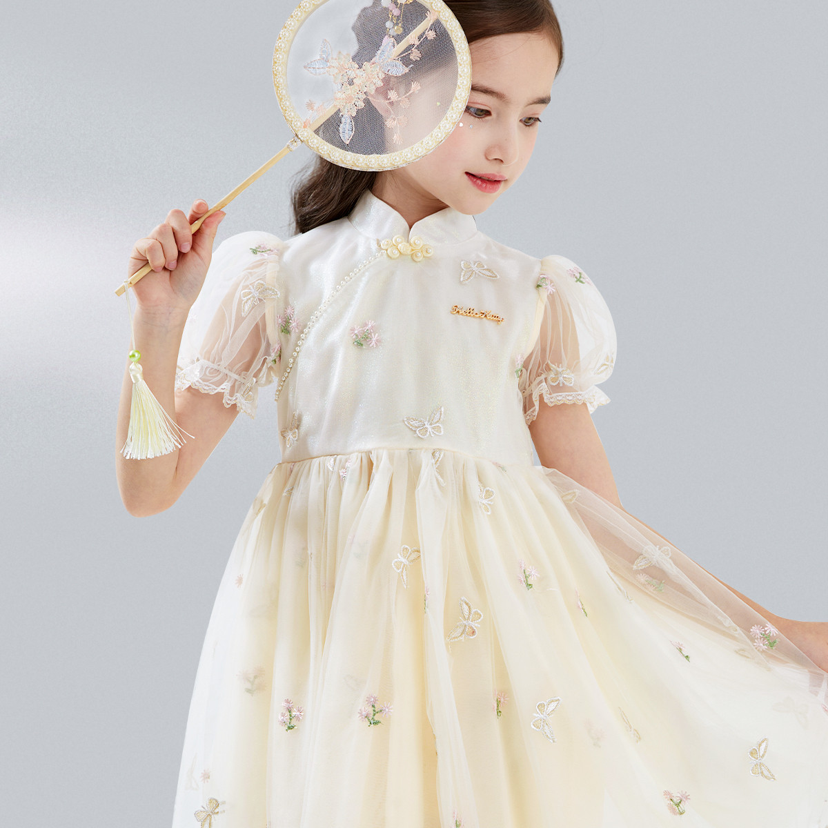 女童连衣裙儿童夏装新款裙子旗袍裙中大童女孩国风网纱裙甜美 500865