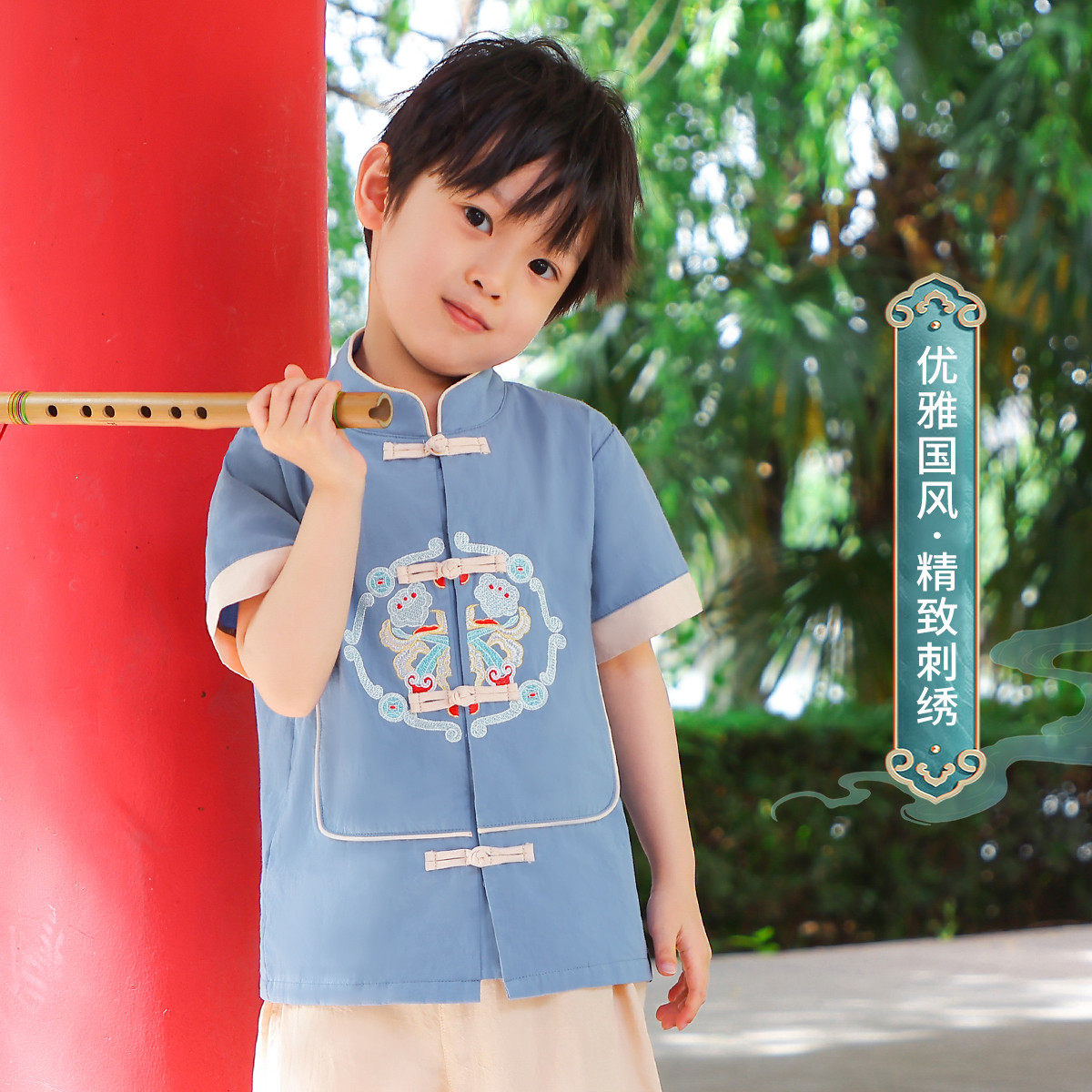 【80-90福利汉服套装】新中式男童唐装儿童舒适透气短袖短裤 827032
