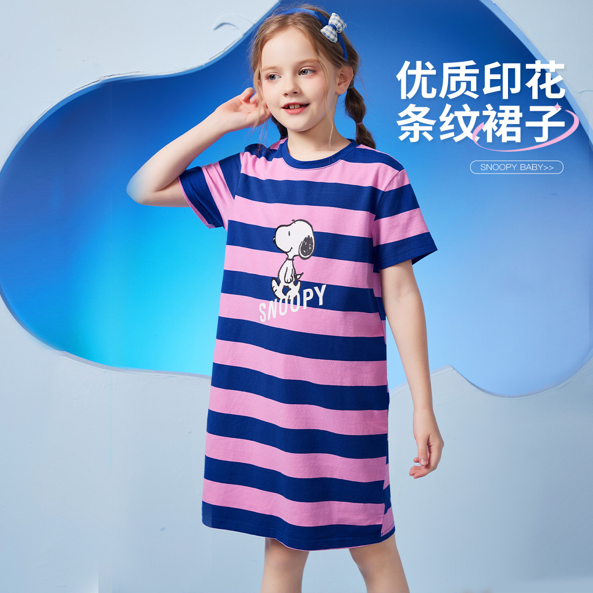 【福利 售完不补】女童连衣裙中大童夏装条纹舒适运动短袖T恤裙 901279