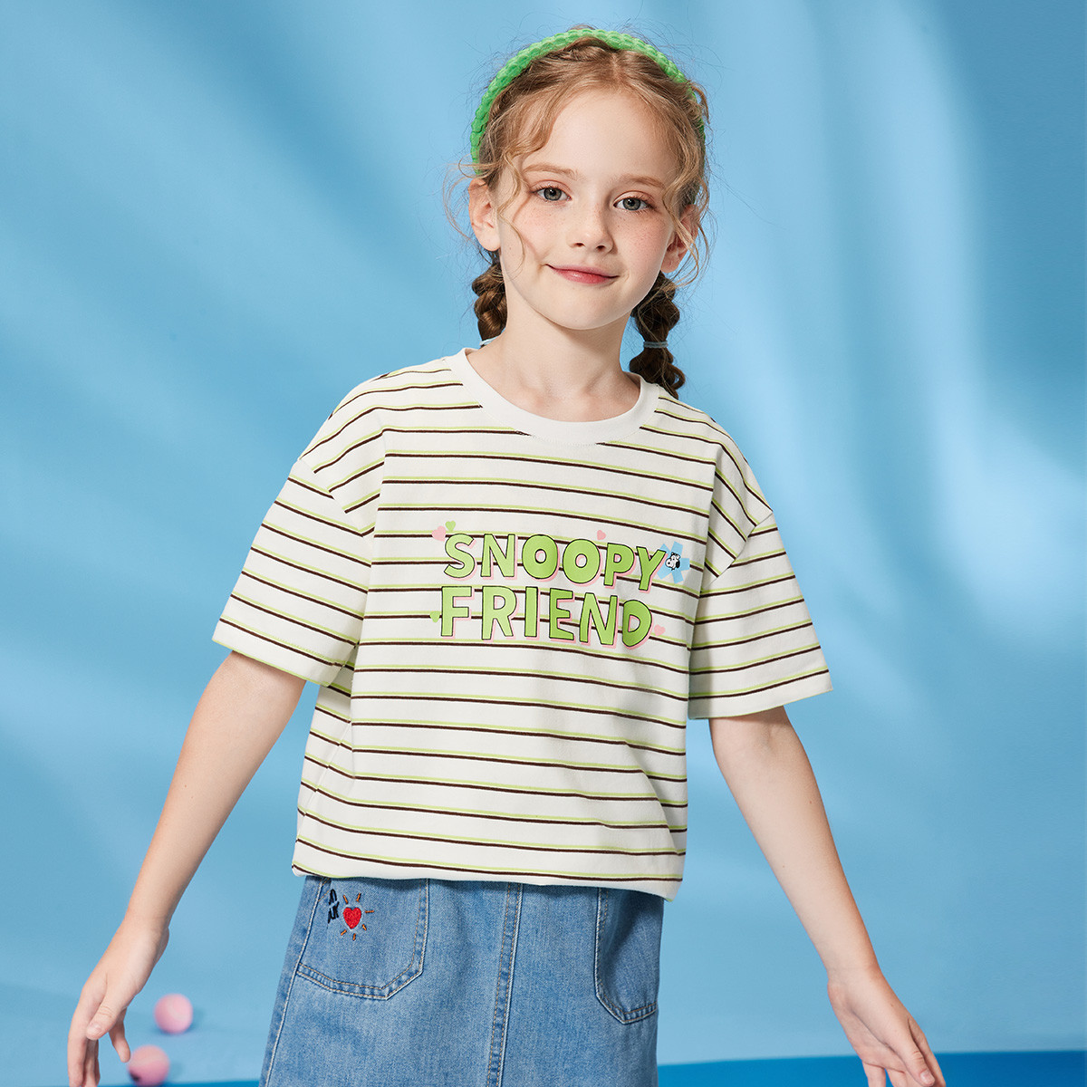 【清新条纹满印】女童t恤夏季中大童半袖薄款透气上衣儿童短袖 438495