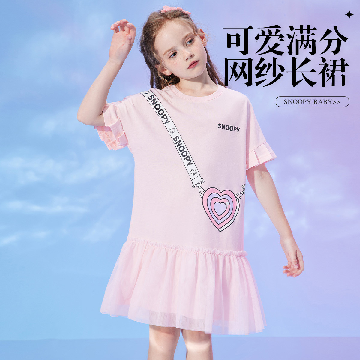 【学院风连衣裙】女童连衣裙夏季中大童网纱甜美儿童t恤裙 115359