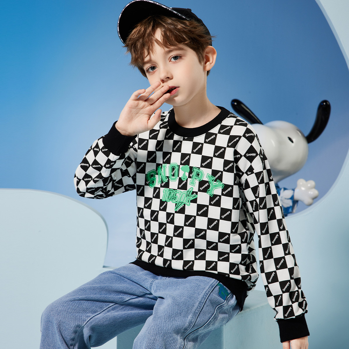 【福利 售完不补】男童卫衣春季中大童圆领套头格子儿童卫衣 837279