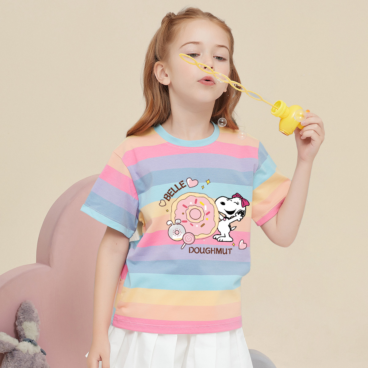 2025夏季女童短袖T恤洋气卡通彩虹条纹T恤舒适亲肤童装 869343