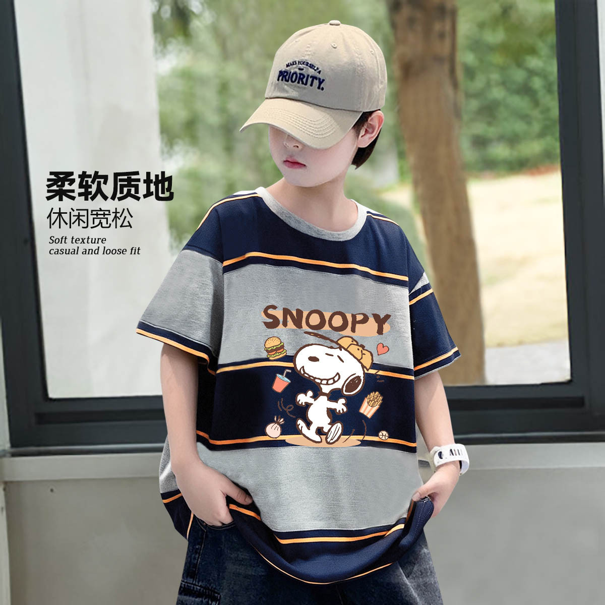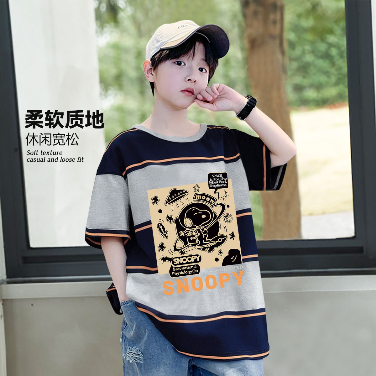 男童短袖T恤2025夏季洋气卡通条纹T恤舒适亲肤中大童装 023391