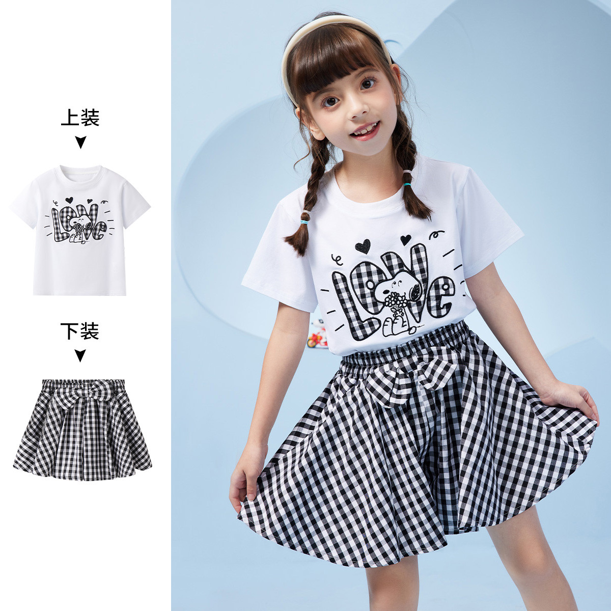 【福利 售完不补】女童套装中大童夏季短袖短裙甜美儿童两件套 528223