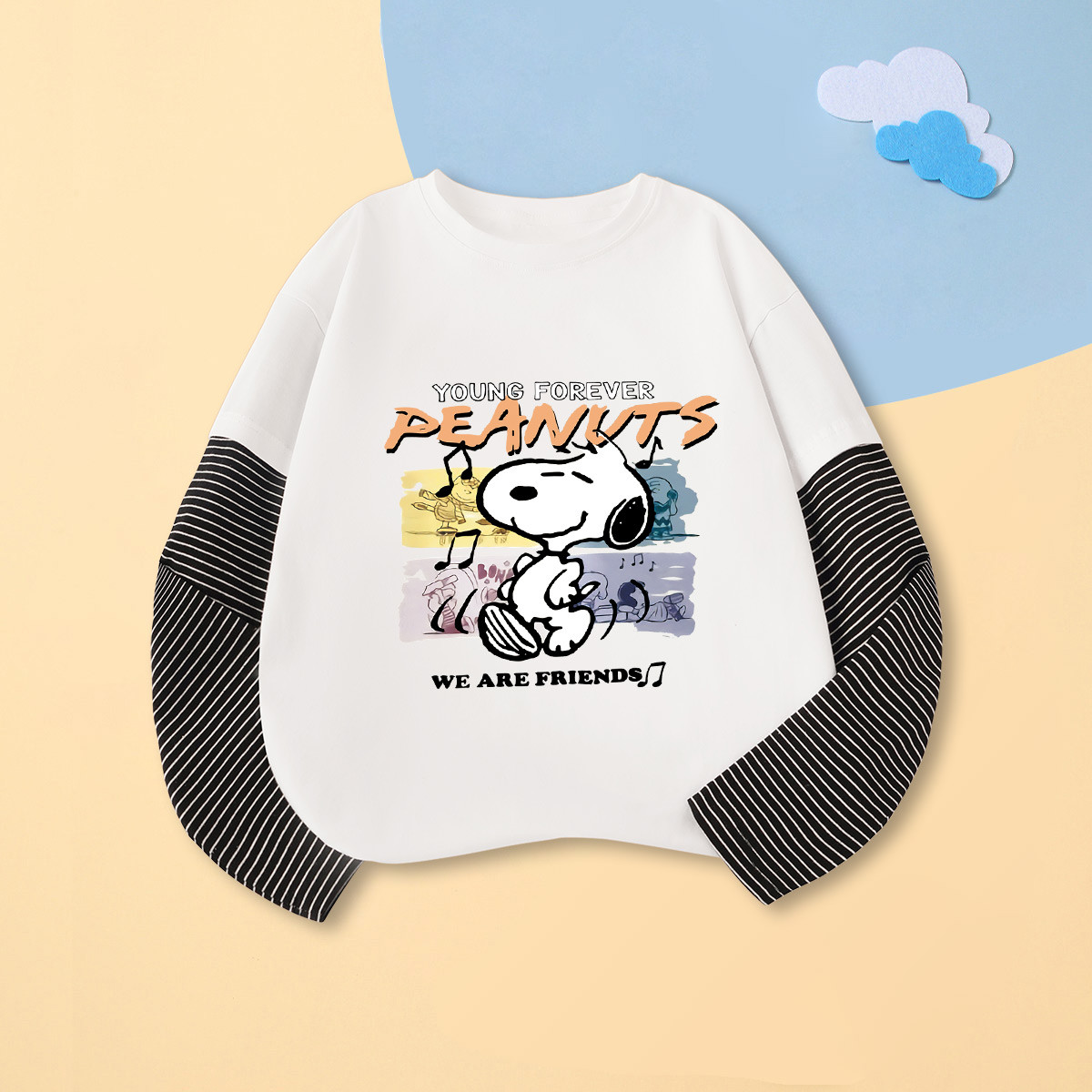 2025春季新款男童经典假两件运动T恤洋气时髦卡通运动中大童 555743