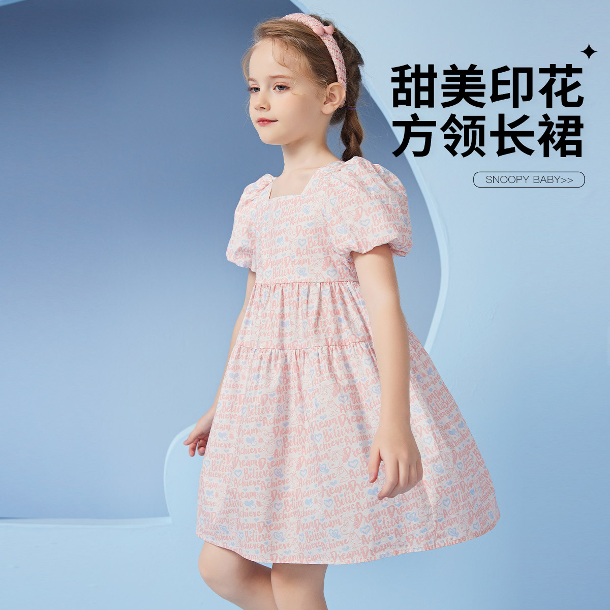 【福利 售完不补】女童连衣裙夏季中大童方领泡泡袖甜美儿童裙子 716703