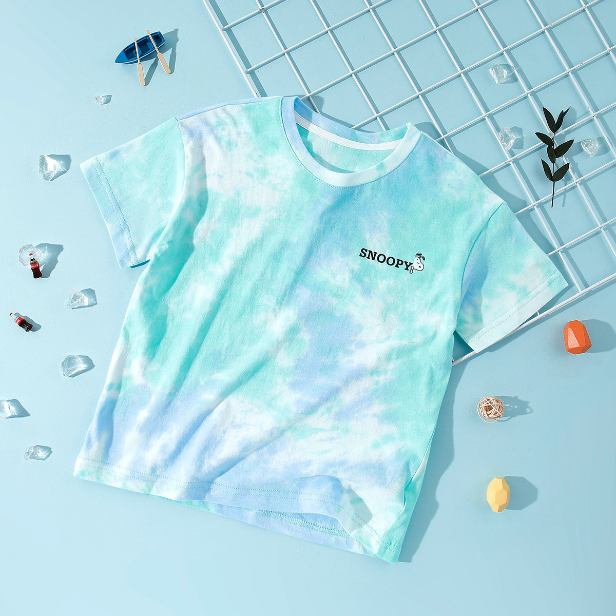 男童帅气T恤夏季薄款上衣舒适多巴胺短袖中大童扎染印花上衣 572255