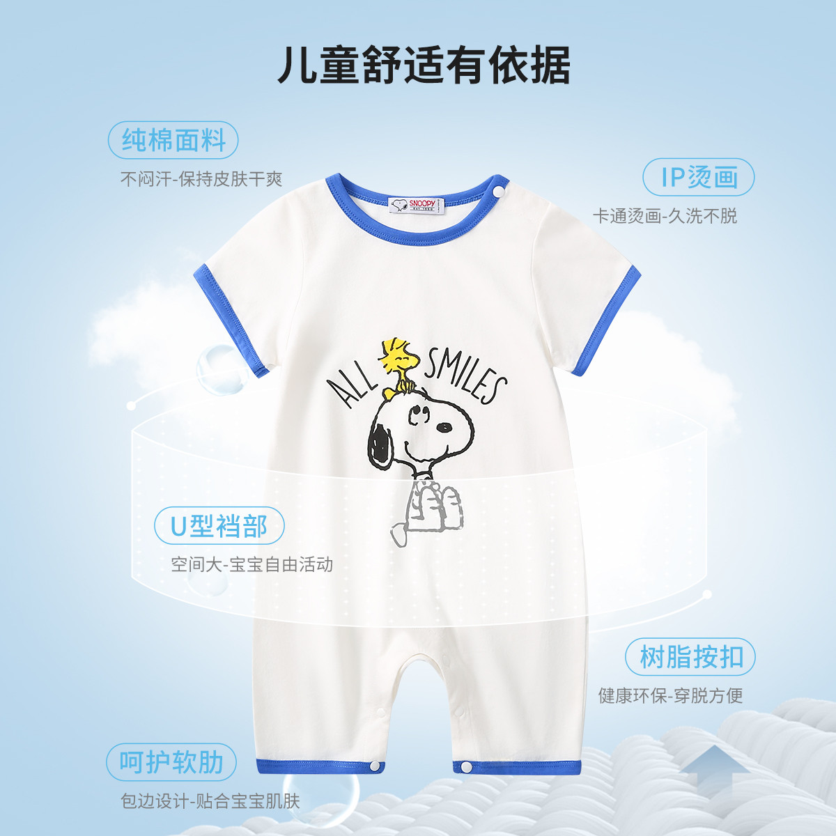 宝宝连体衣夏季薄款纯棉睡衣新生儿哈衣男宝宝爬服婴儿包屁衣 208536