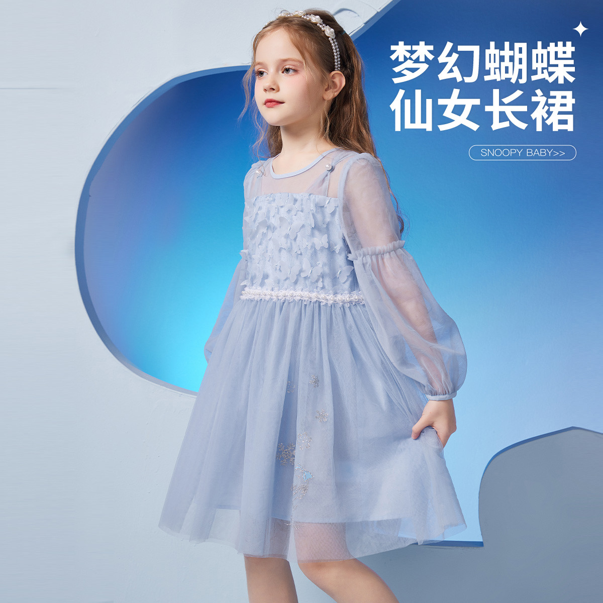 【福利 售完不补】女童连衣裙春季中大童立体蝴蝶珍珠网纱仙女裙 941151