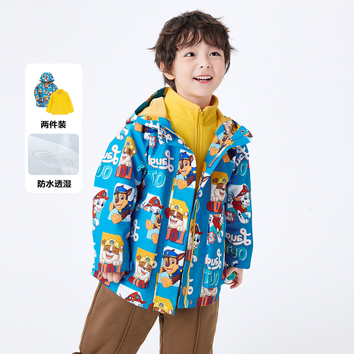 一衣多穿三防两件套儿童外套男童春秋款小童宝宝连帽上衣摇粒绒 392837