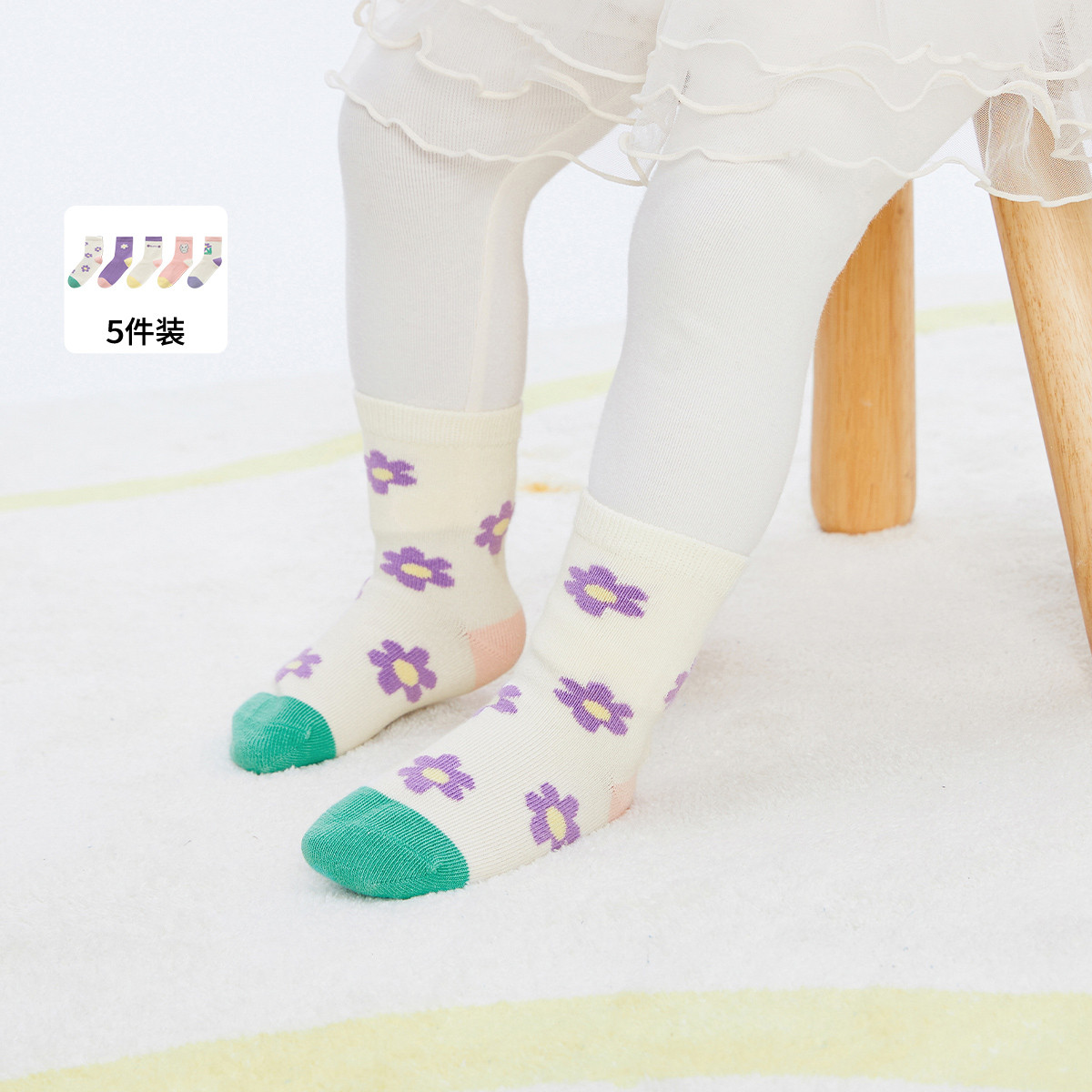 舒适趣味恐龙图案中筒袜婴幼袜子男童女童春秋弹力不勒脚五双装 083973