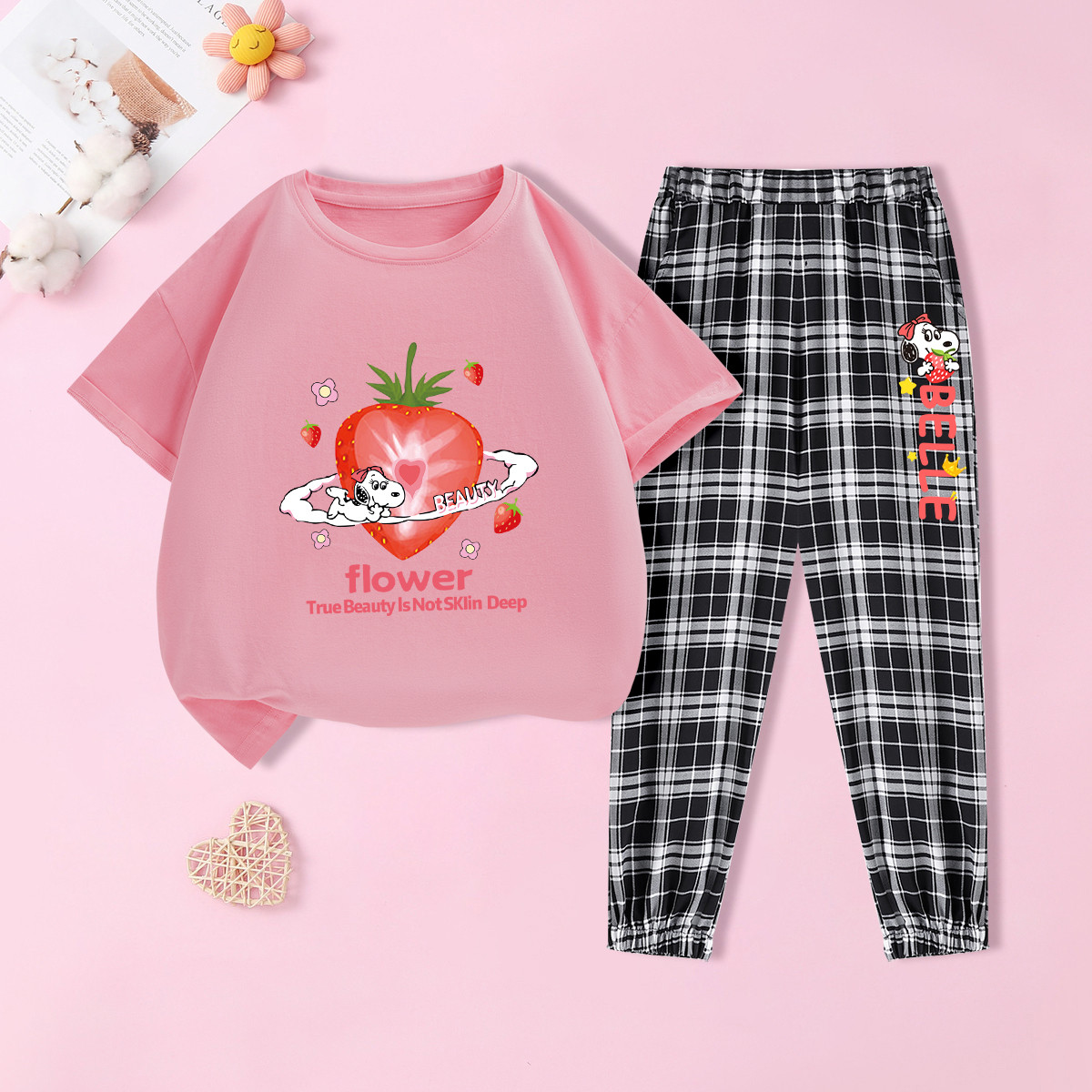 女童套装2025夏季短袖T恤轻薄透气防蚊裤中大童两件套装 911071