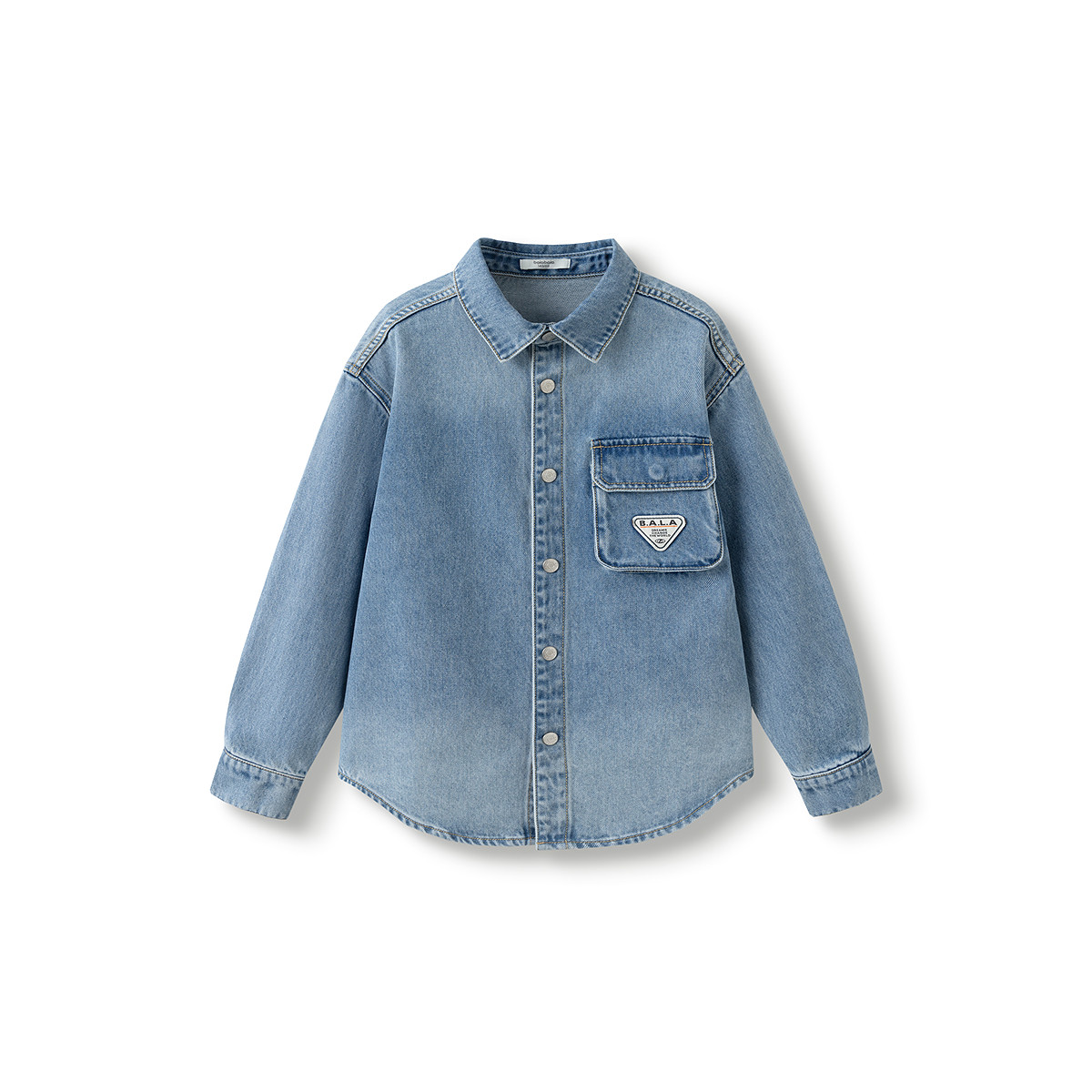 巴拉巴拉童装男童长袖衬衫儿童上衣2025新春装翻领纯棉牛仔 815621