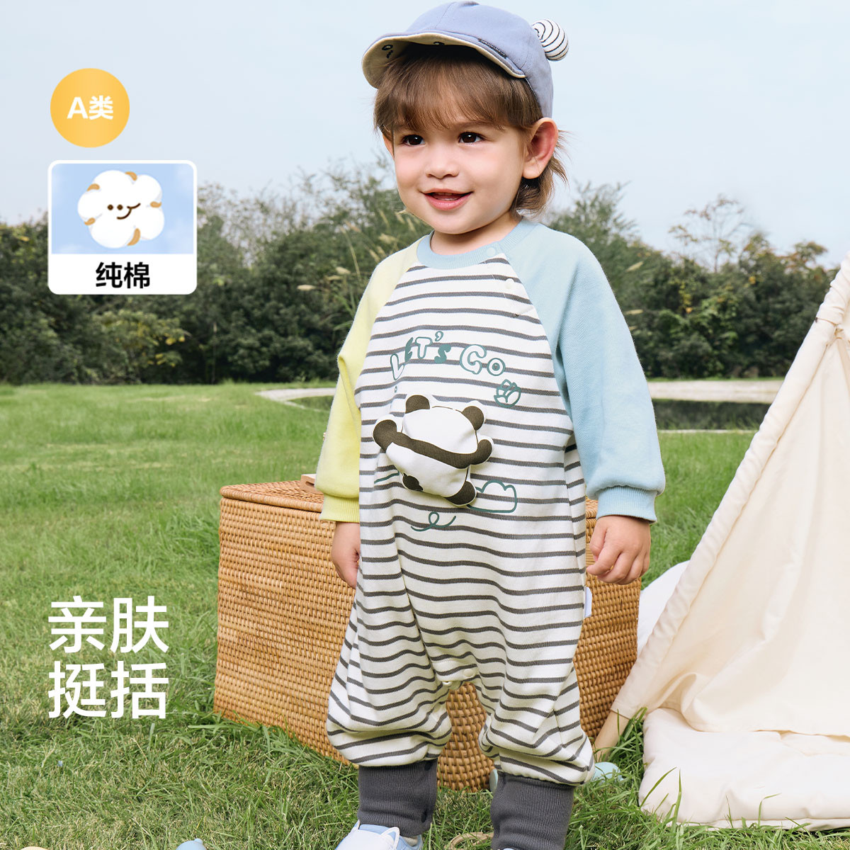 班杰威尔 婴儿纯棉无骨宝宝哈衣 59cm 超薄长袖蓝小象