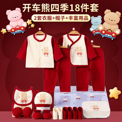 班杰威尔 新生儿礼盒婴儿衣服用品套装 66cm 四季开车熊A红