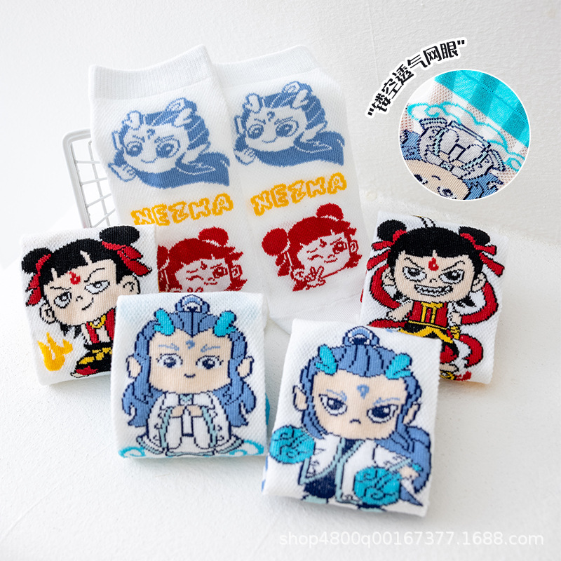 哆宝时代哪吒儿童袜子【5双包邮】夏季薄款卡通网眼短袜中大童宝宝女男童袜子春夏