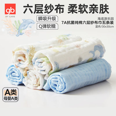 好孩子 7A抗菌纯棉六层纱布巾 五条装 (W) 海底游乐园 蓝色