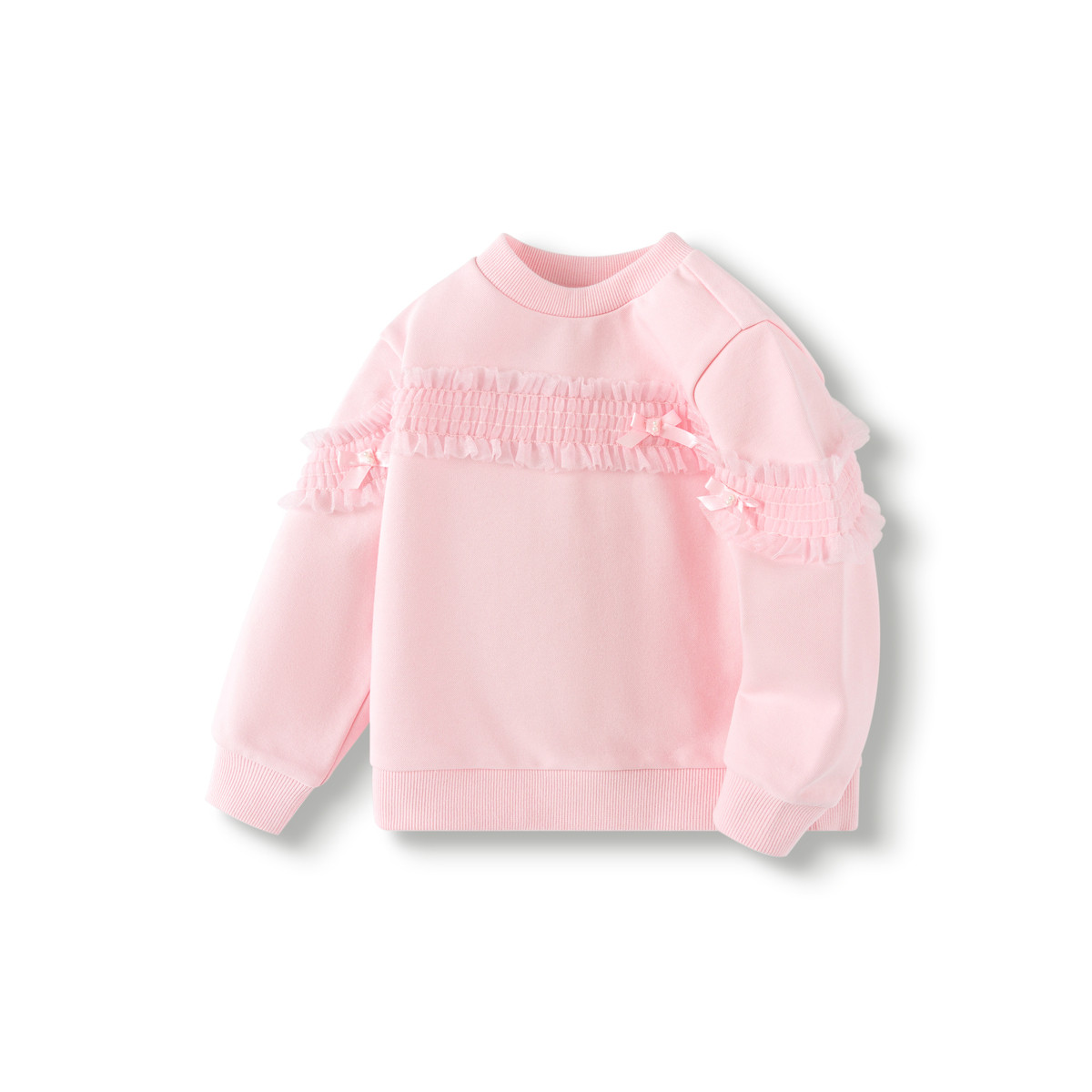 巴拉巴拉女童卫衣粉嫩纯色上衣时尚甜美春装荷叶边潮 071237