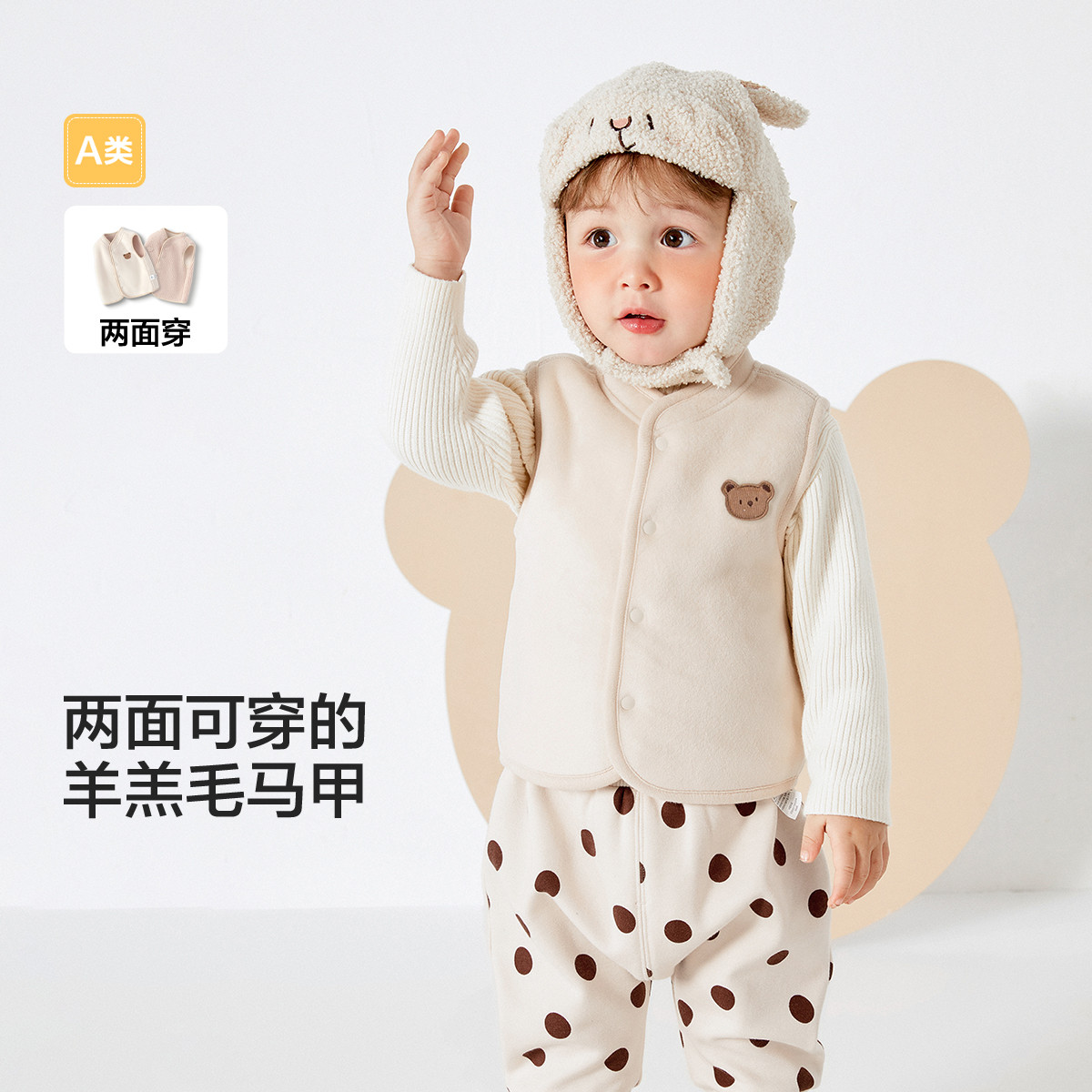 巴拉巴拉宝宝女童马甲冬装婴儿男童背心儿童天鹅绒加绒两面穿时尚 692549