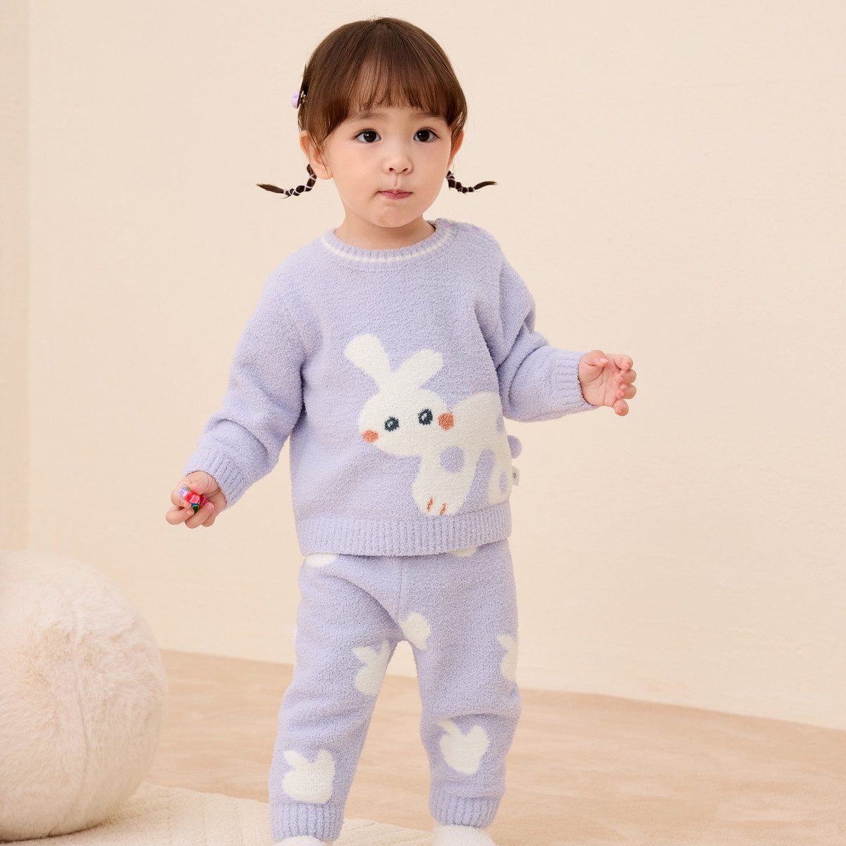 半边绒卡通婴幼儿秋衣套装男童女童长袖家居服秋冬宝宝两件套 260357