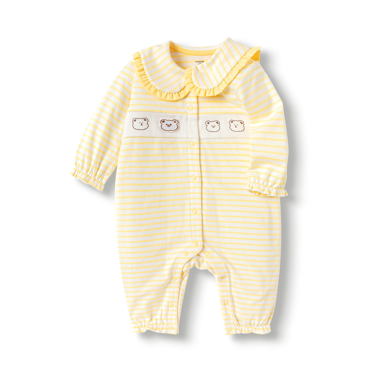 花边翻领婴儿连体衣女童长袖外出服哈衣爬服春新生儿宝宝条纹 054213