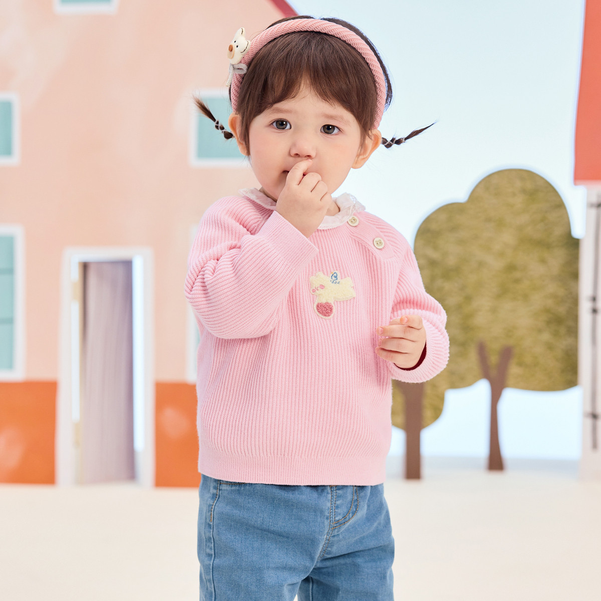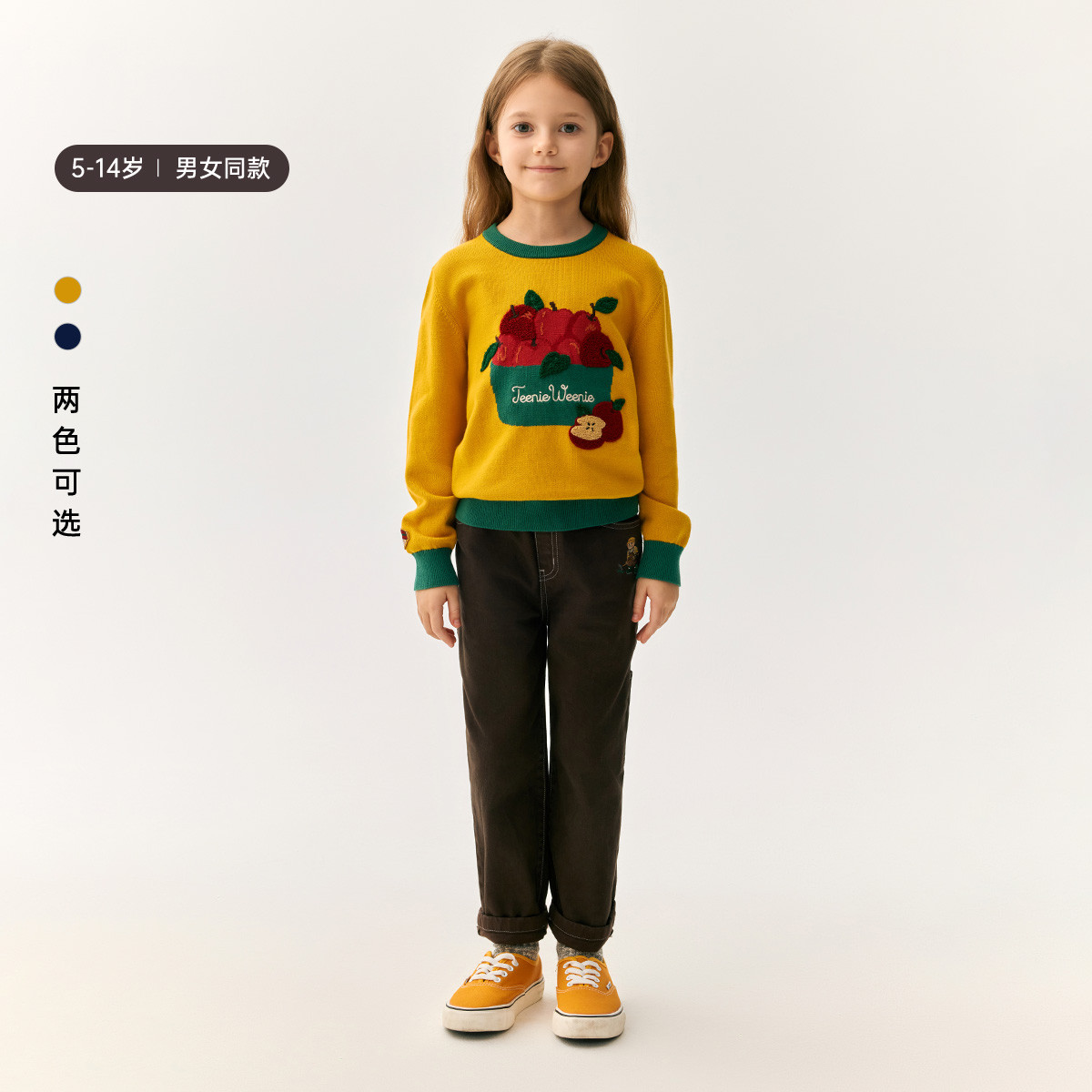 小熊童装秋季男女童苹果篮撞色提花毛衣 191169