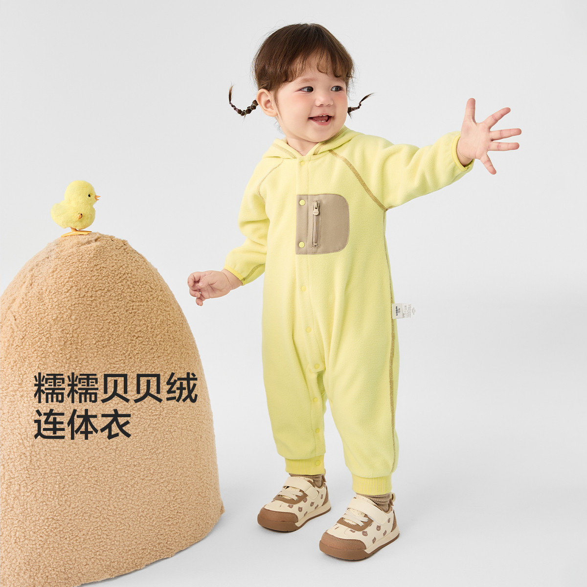 连帽加绒婴儿连体衣男童女童外出哈衣爬服春秋装宝宝萌趣爬爬服 943301