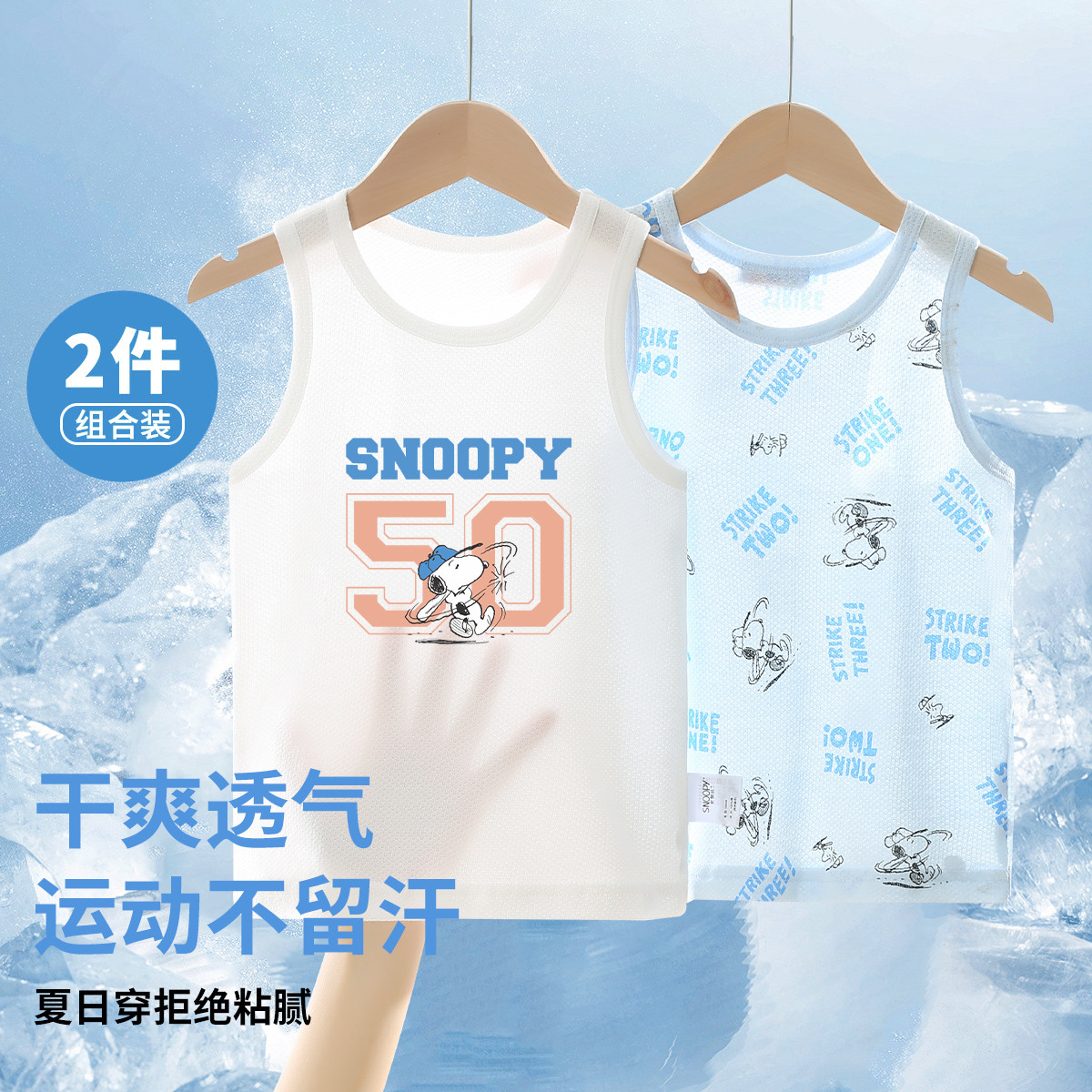 【纯棉网眼背心2件装】男童背心25夏季新款清凉透气儿童背心 972312