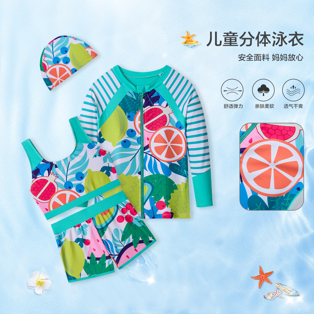 【含泳帽】男童泳衣2024夏儿童印花长袖运动泳衣分体式泳衣潮 102671