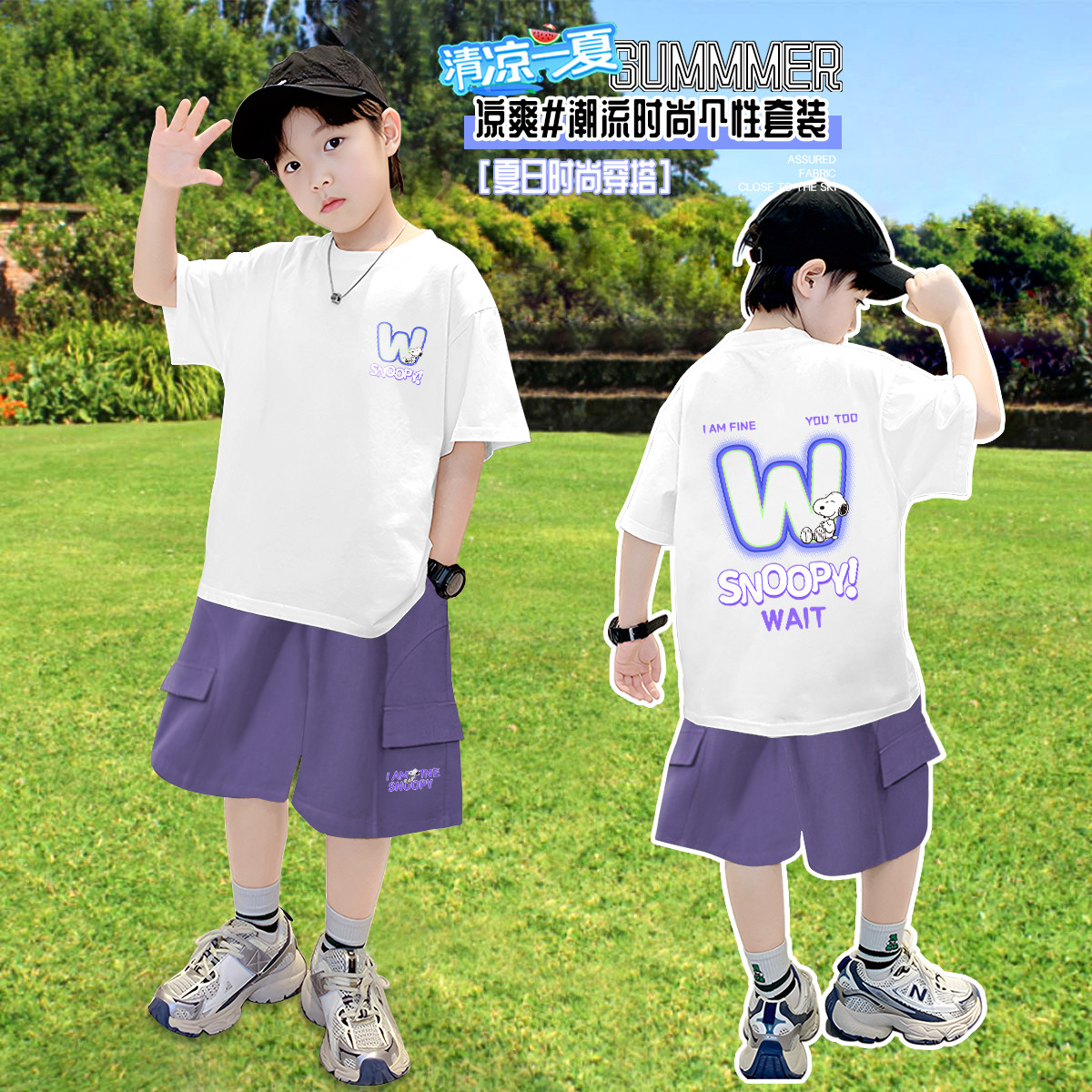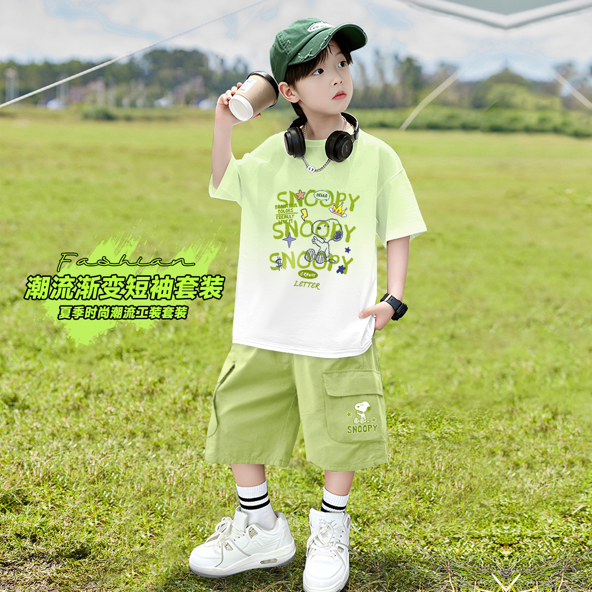 男童套装2025清爽夏季潮流百搭儿童短袖亲肤舒适中大童工装裤 238815