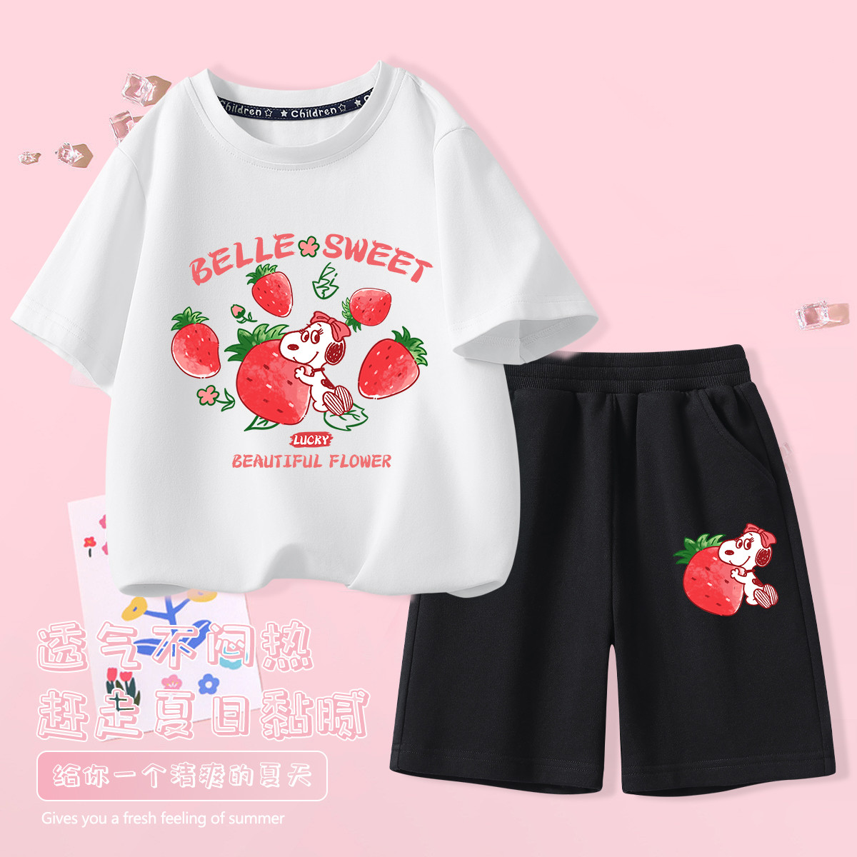 旗下likeuu【吸湿排汗】男女童短袖家居服套装睡衣睡裤 767808