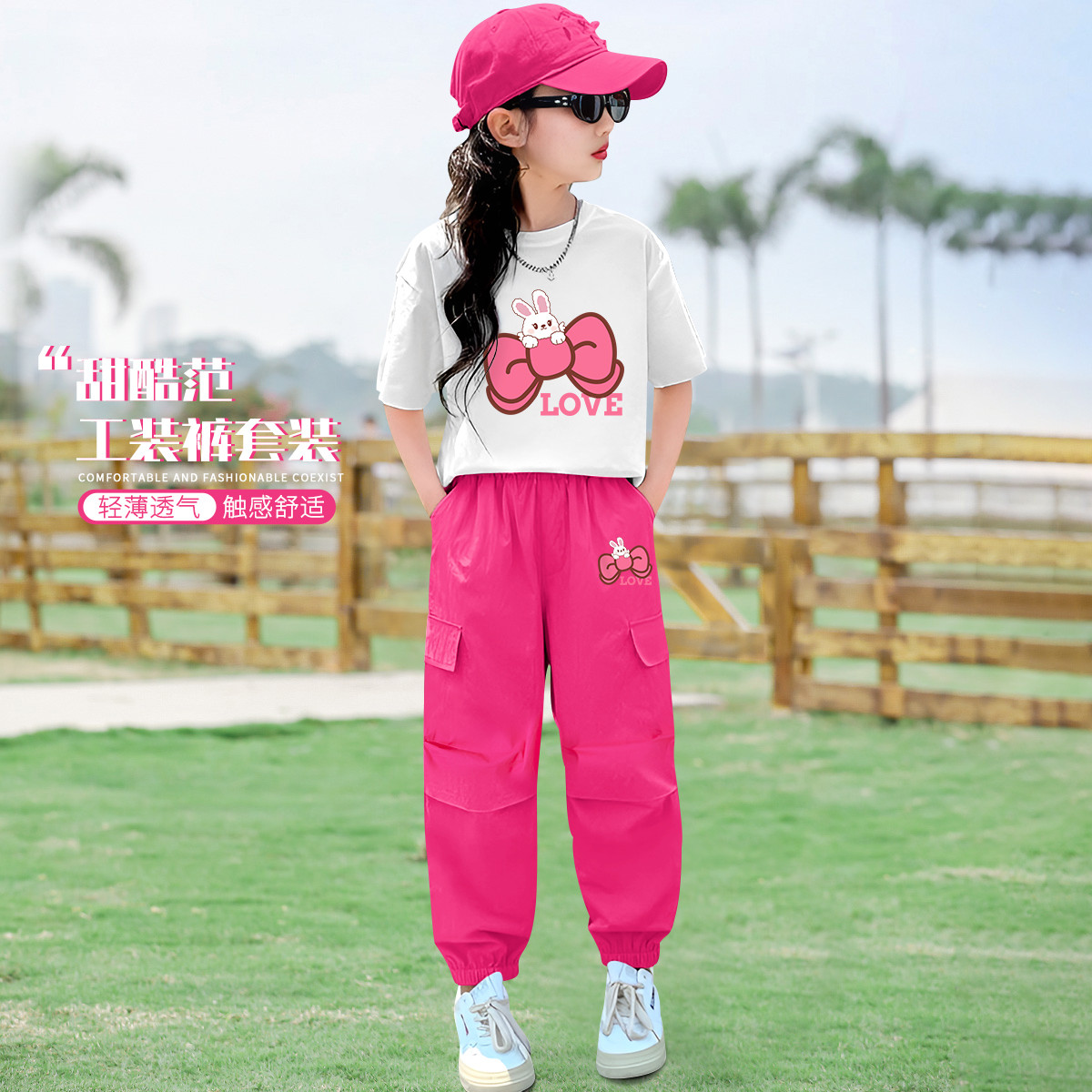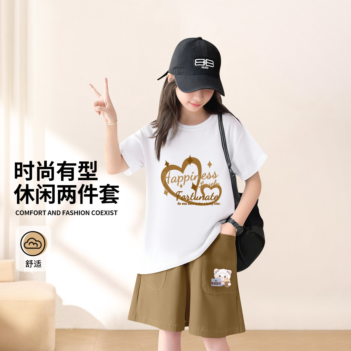 夏季季女童甜美套装纯棉短袖运动短裤两件套百搭中大童 769295