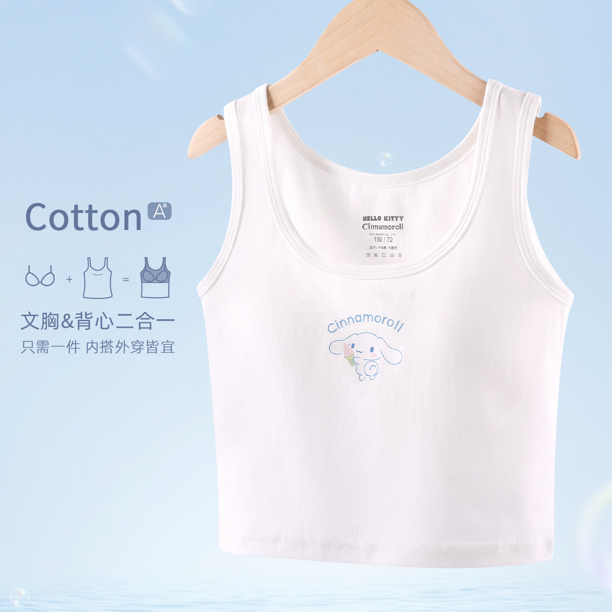 玉桂狗背心发育期少女带胸垫吊带夏季新薄款内穿外搭女孩打底内衣 760961
