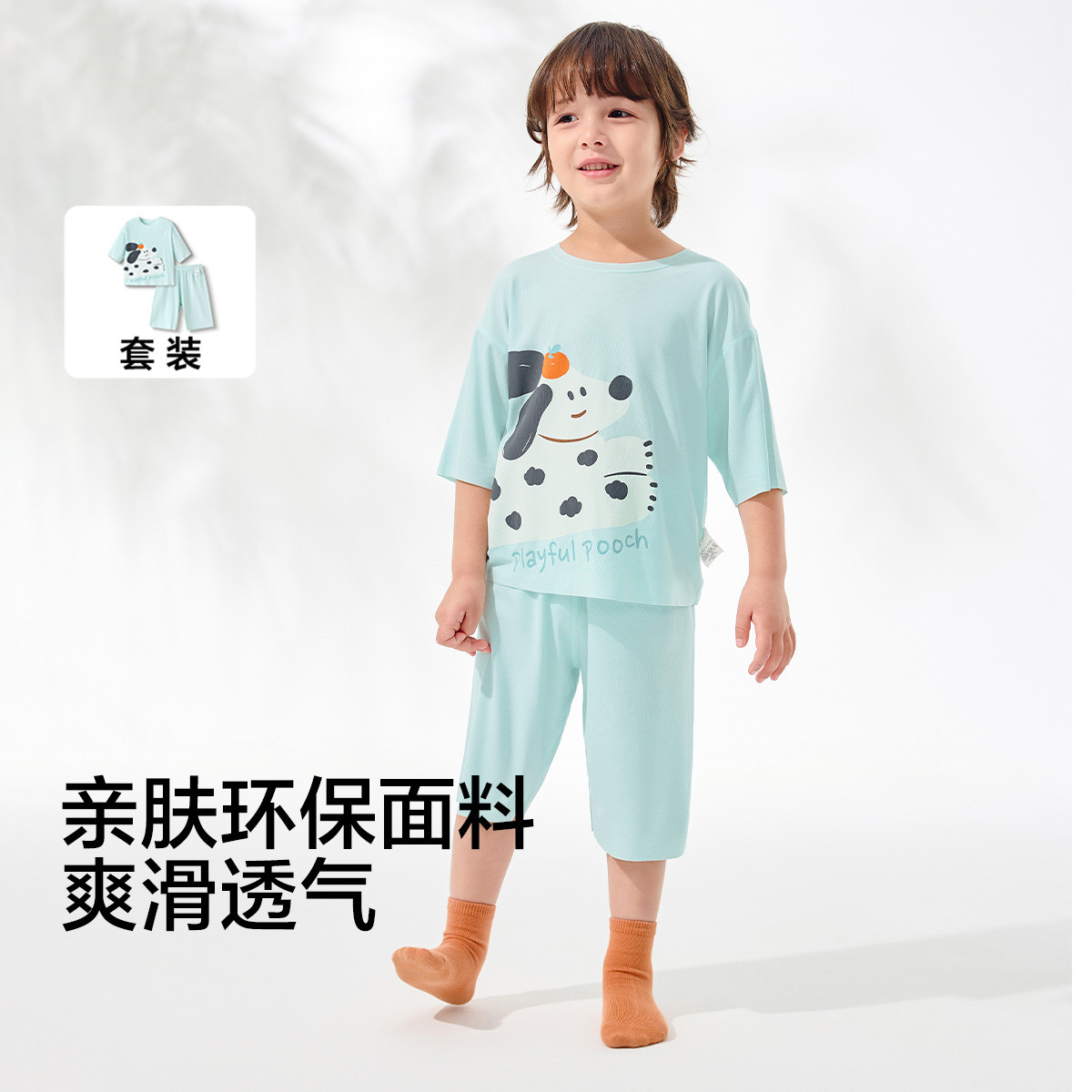 儿童睡衣套装夏新款空调服男童女童家居服优可丝弹力亲肤短袖套装 764997