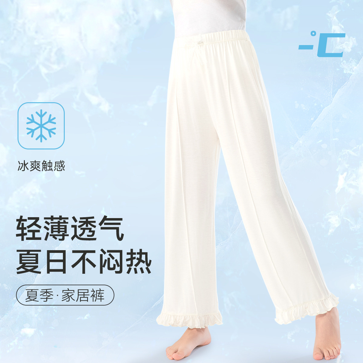 儿童睡衣睡裤夏季薄款冰丝高弹圆领女童家居服套装中大童空调服 082379