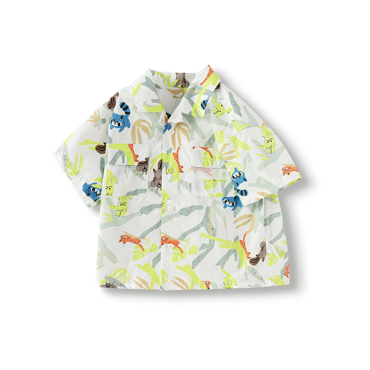 巴拉巴拉童装男童短袖衬衫纯棉衬衣2025新款夏装户外印花潮流 993349