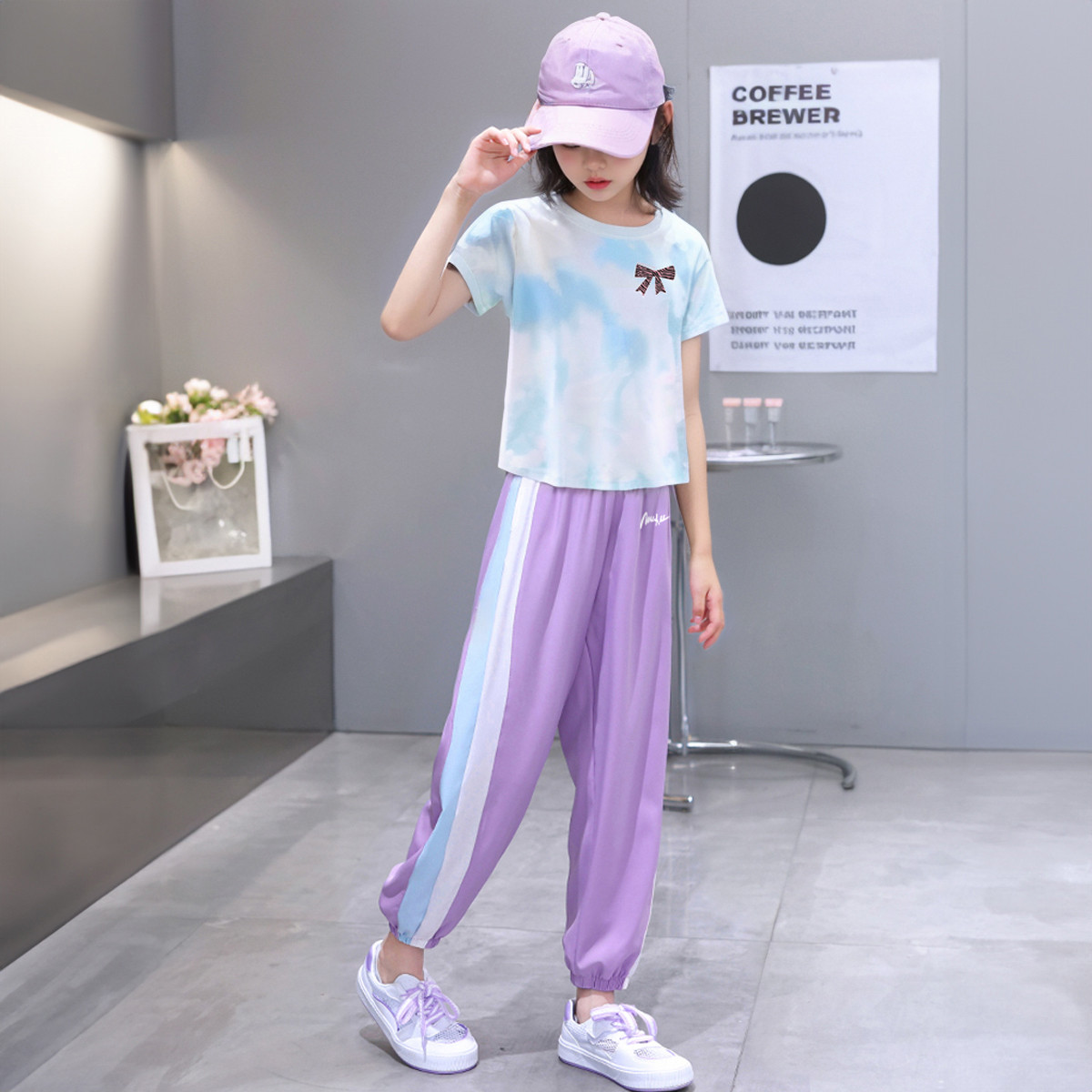 童装女童运动套装24夏季中大童时髦洋气短袖+长裤两件套轻薄透气 460051