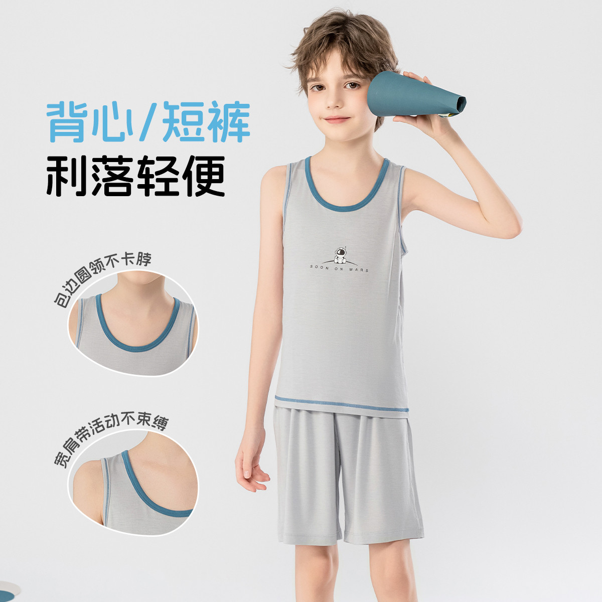 儿童睡衣睡裤夏季薄款冰丝套装新款男童家居服中大童青少年空调服 242123