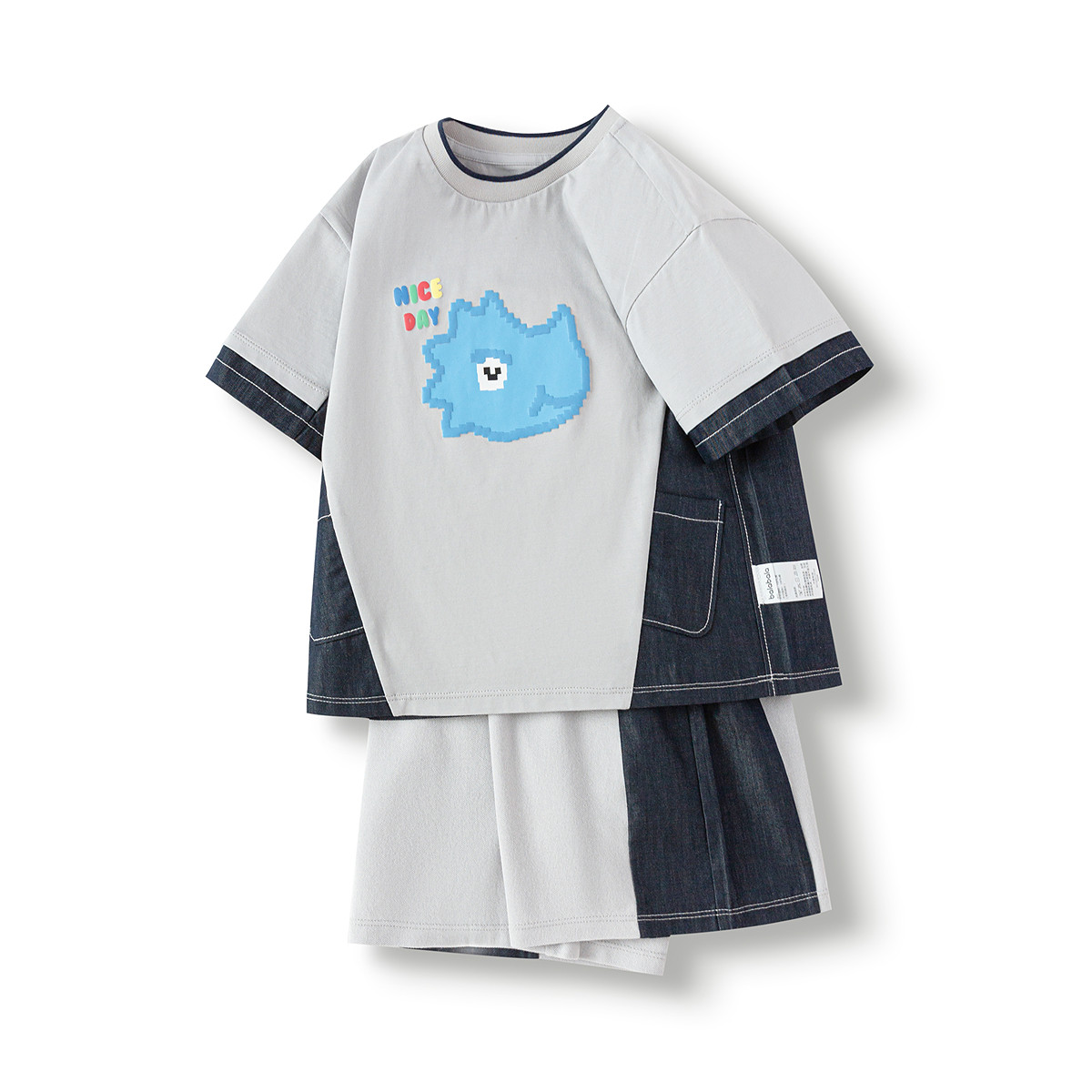 巴拉巴拉童装儿童短袖套装男童两件套拼色宝宝衣服2025夏新款 339077