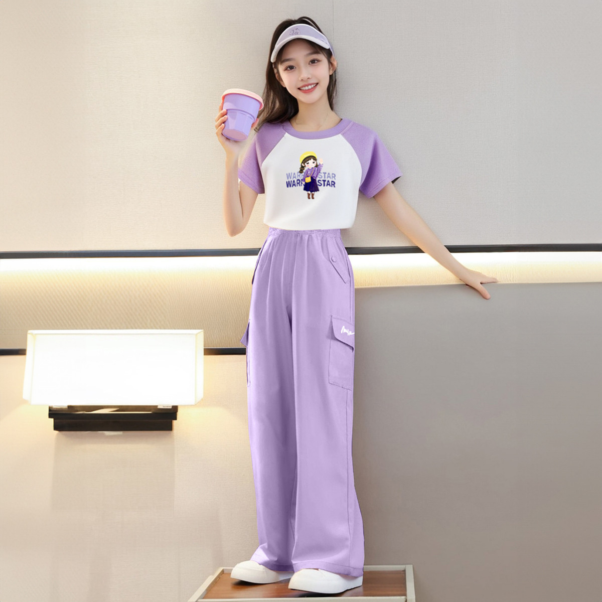 童装女童套装24夏季大童少女百搭短袖山本裤两件套薄款夏装潮 042195