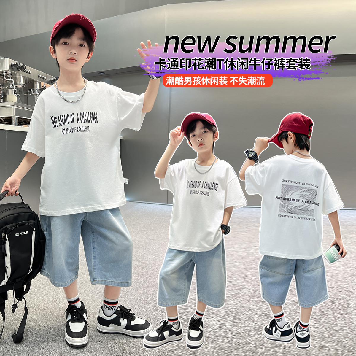 男童夏季套装2025两件套儿童夏装男孩百搭短袖牛仔裤两件套 192783