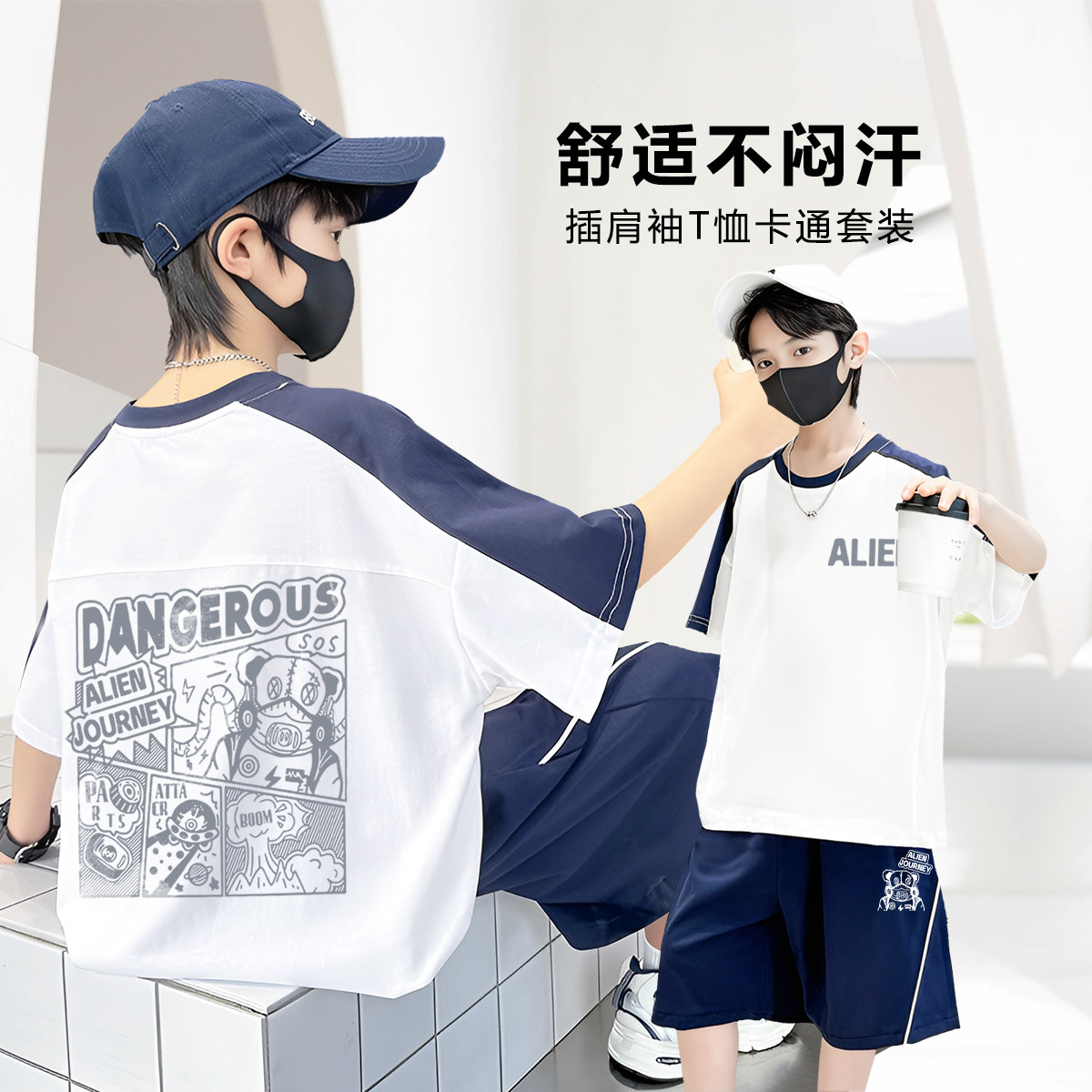 男童休套装夏季季时髦百搭拼接短袖短裤中大童两件套 583247