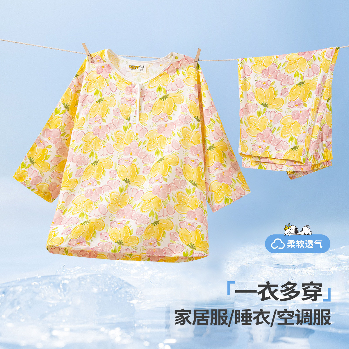 【透气绵绸】春季女童睡衣家居服套装儿童空调服七分袖睡衣睡裤 738520